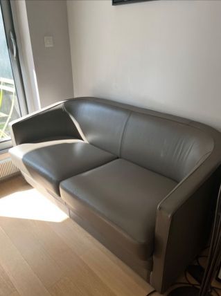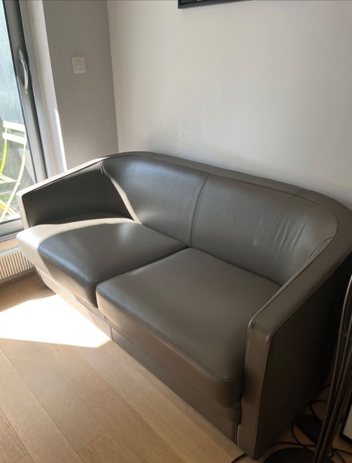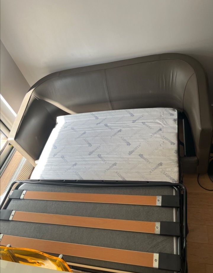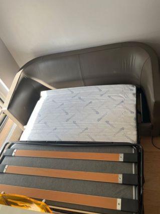 Sommier à Lattes. Cuir Vachette Nevada Elephant. Dimension déplié 228cm.