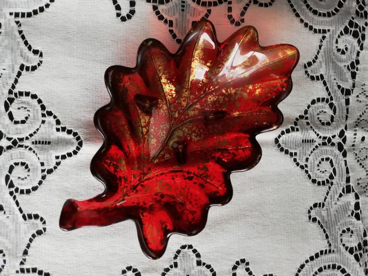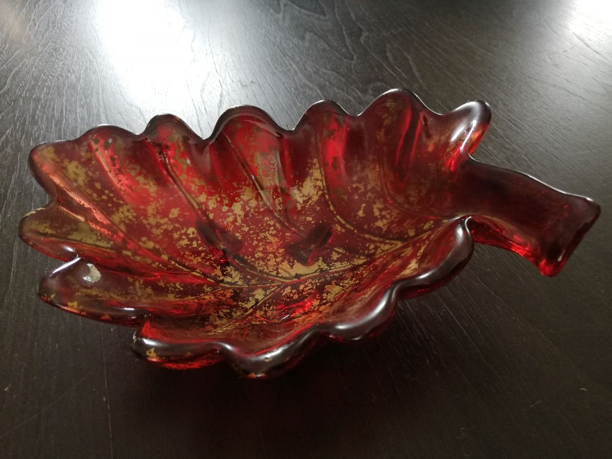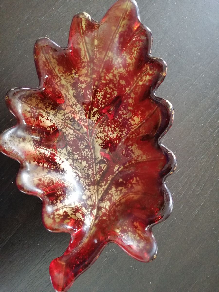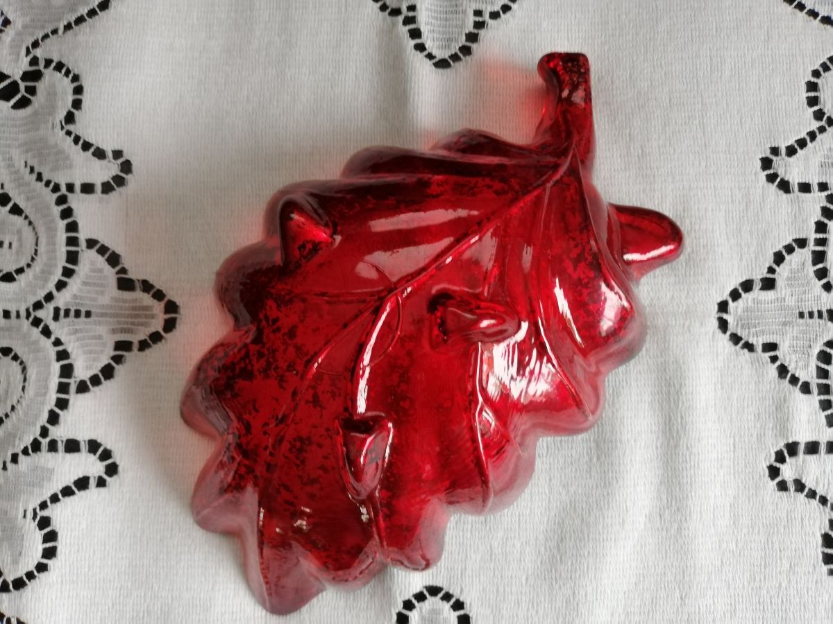Le verre est épais, la coupelle en forme de feuille de chêne est très creuse, 3 picots sur l'envers lui donne une bonne stabilité.