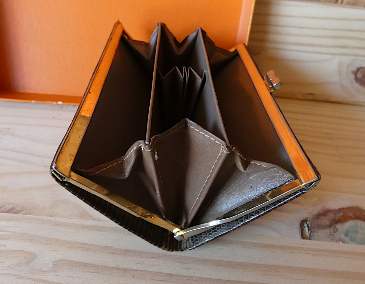 Grand porte-billets/monnaies Vintage années 1950, entièrement en cuir, en très bon état, ferme parfaitement, aucune déchirue, aucun manque.
