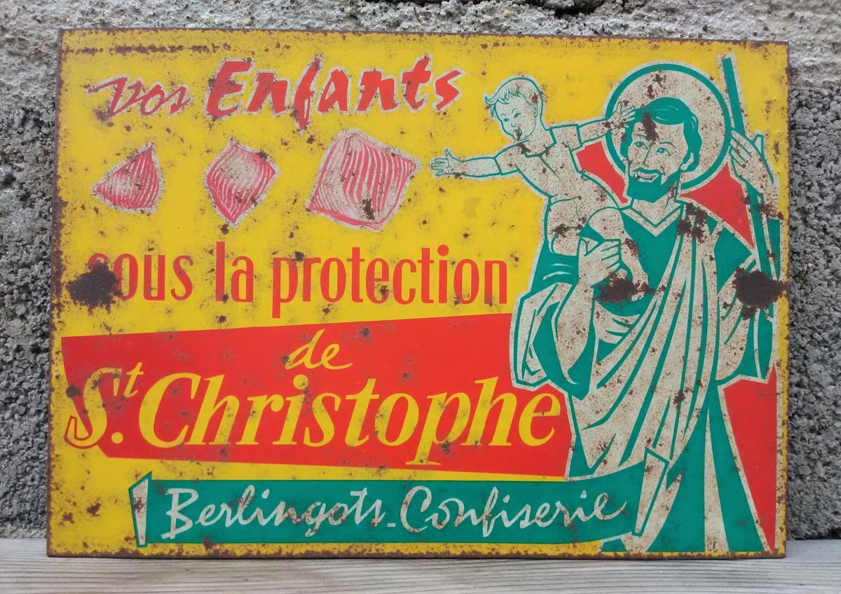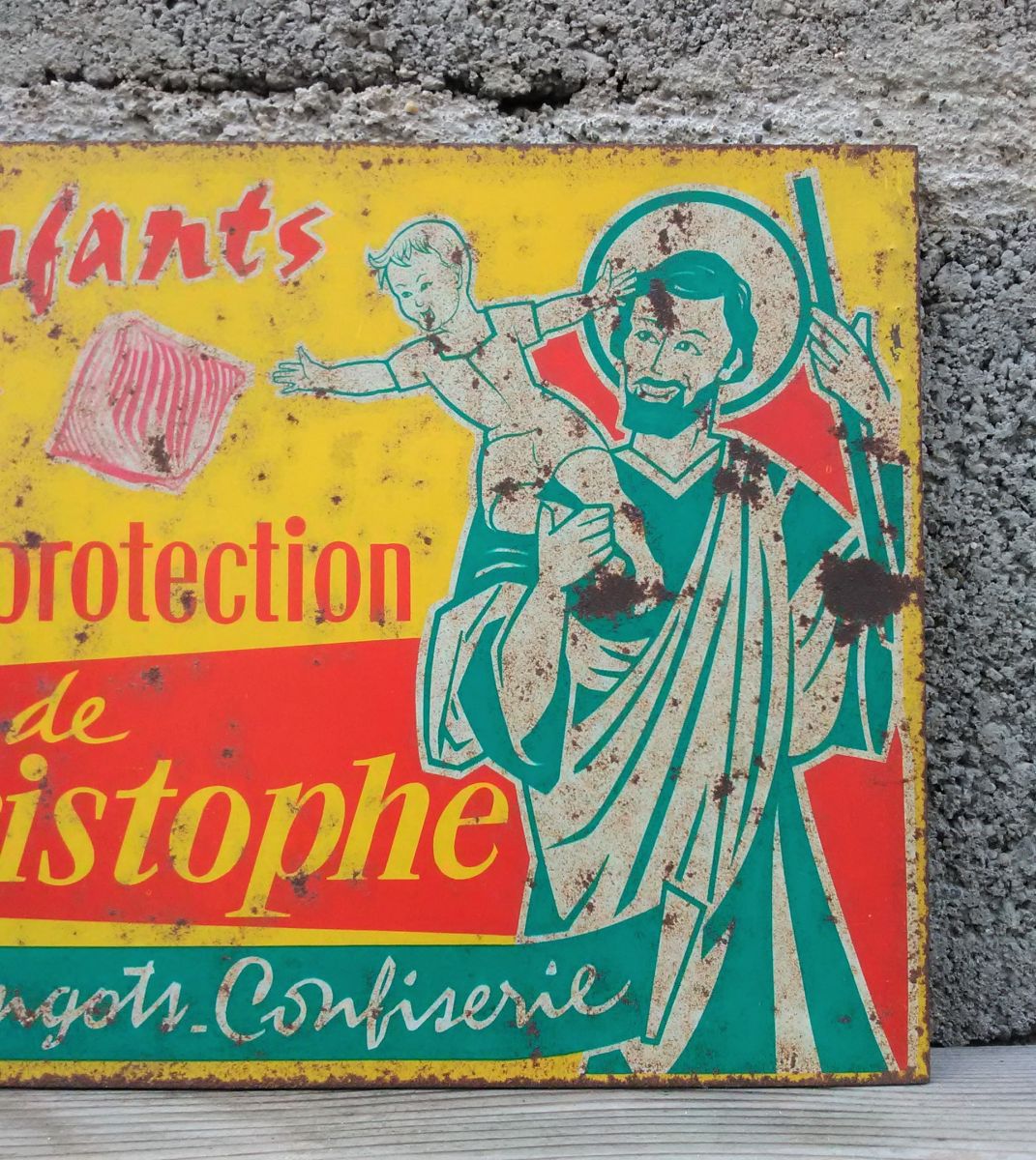 Plaque en tôle lithographiée - Confiserie Saint Christophe