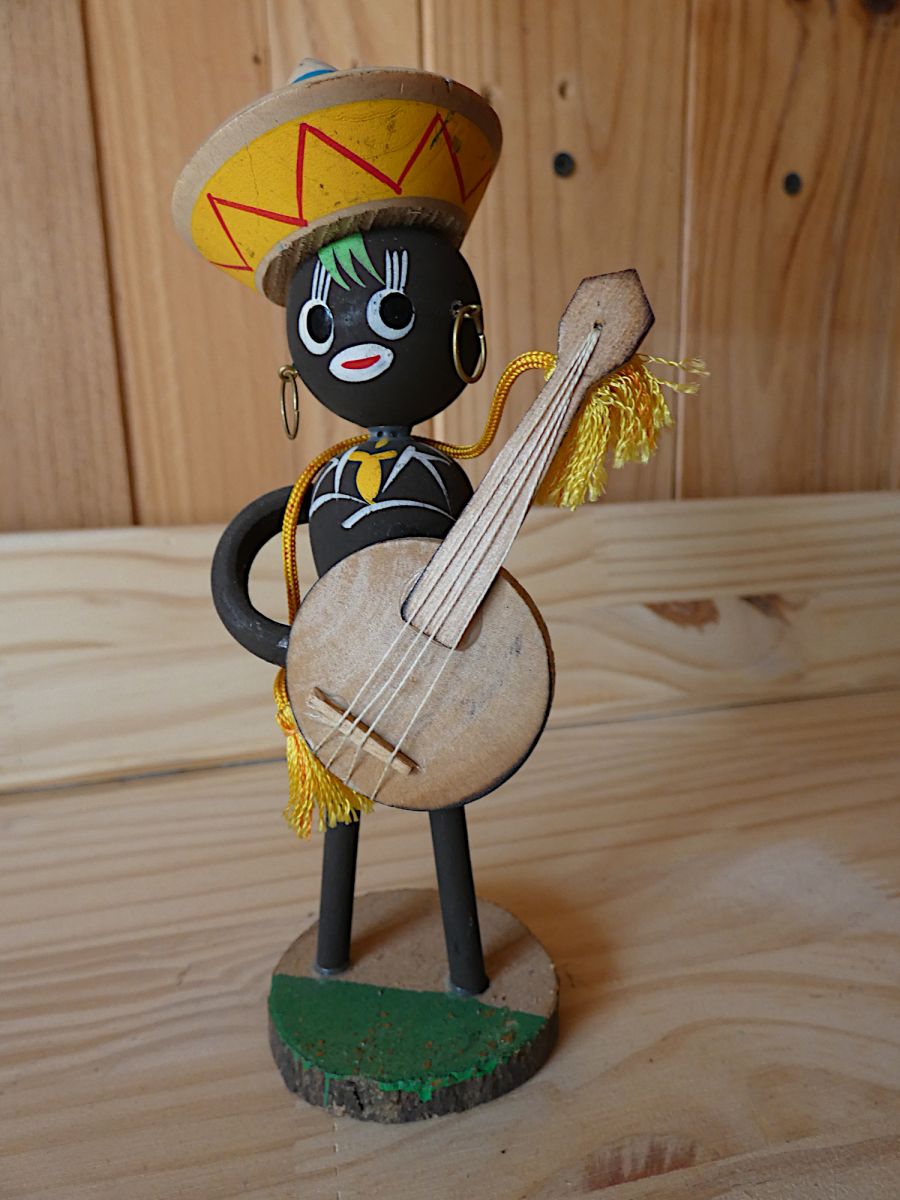 Décapsuleur personnage en bois et son second guitariste