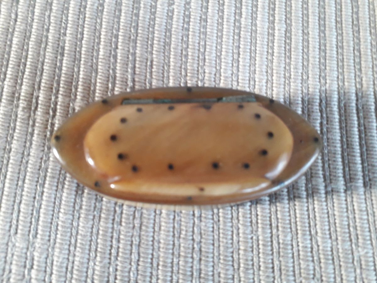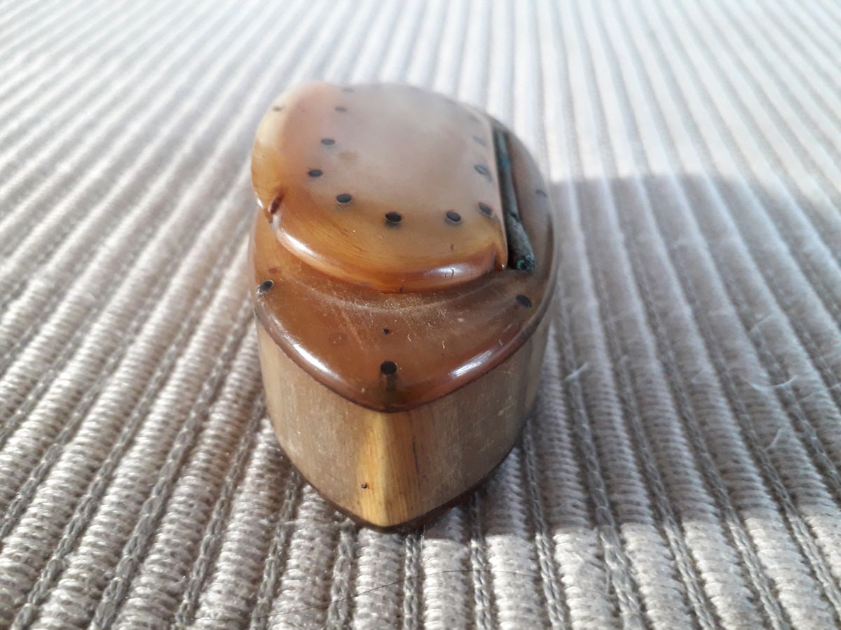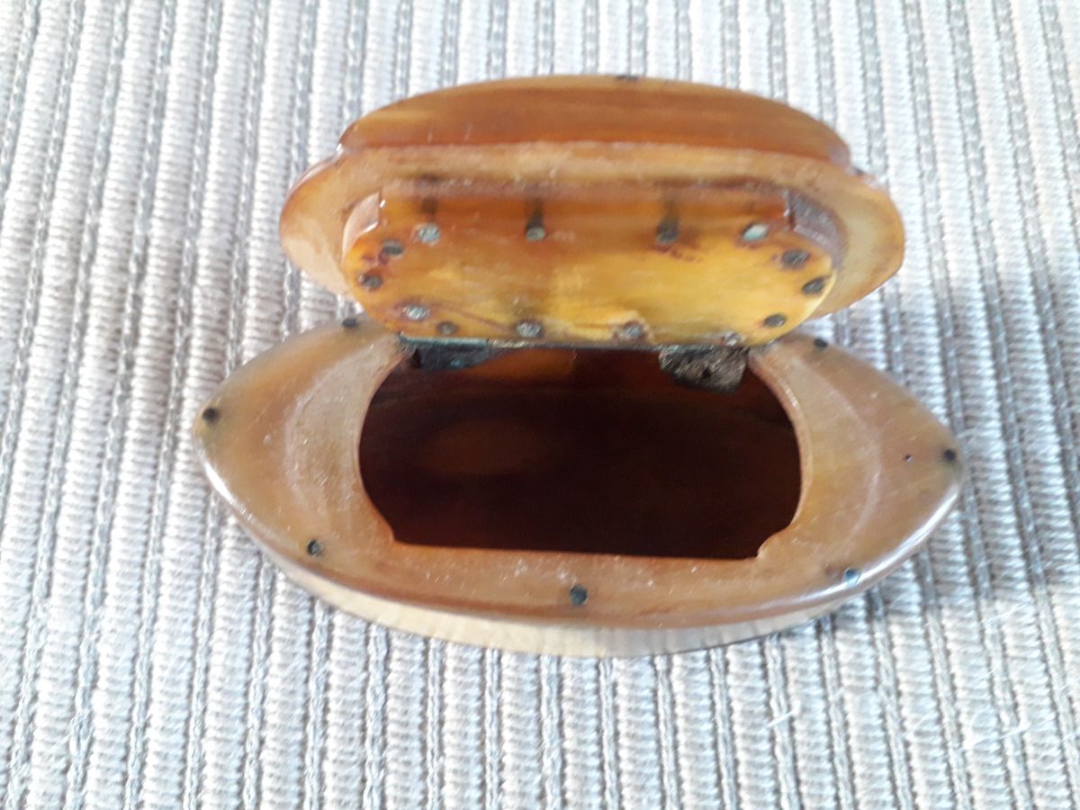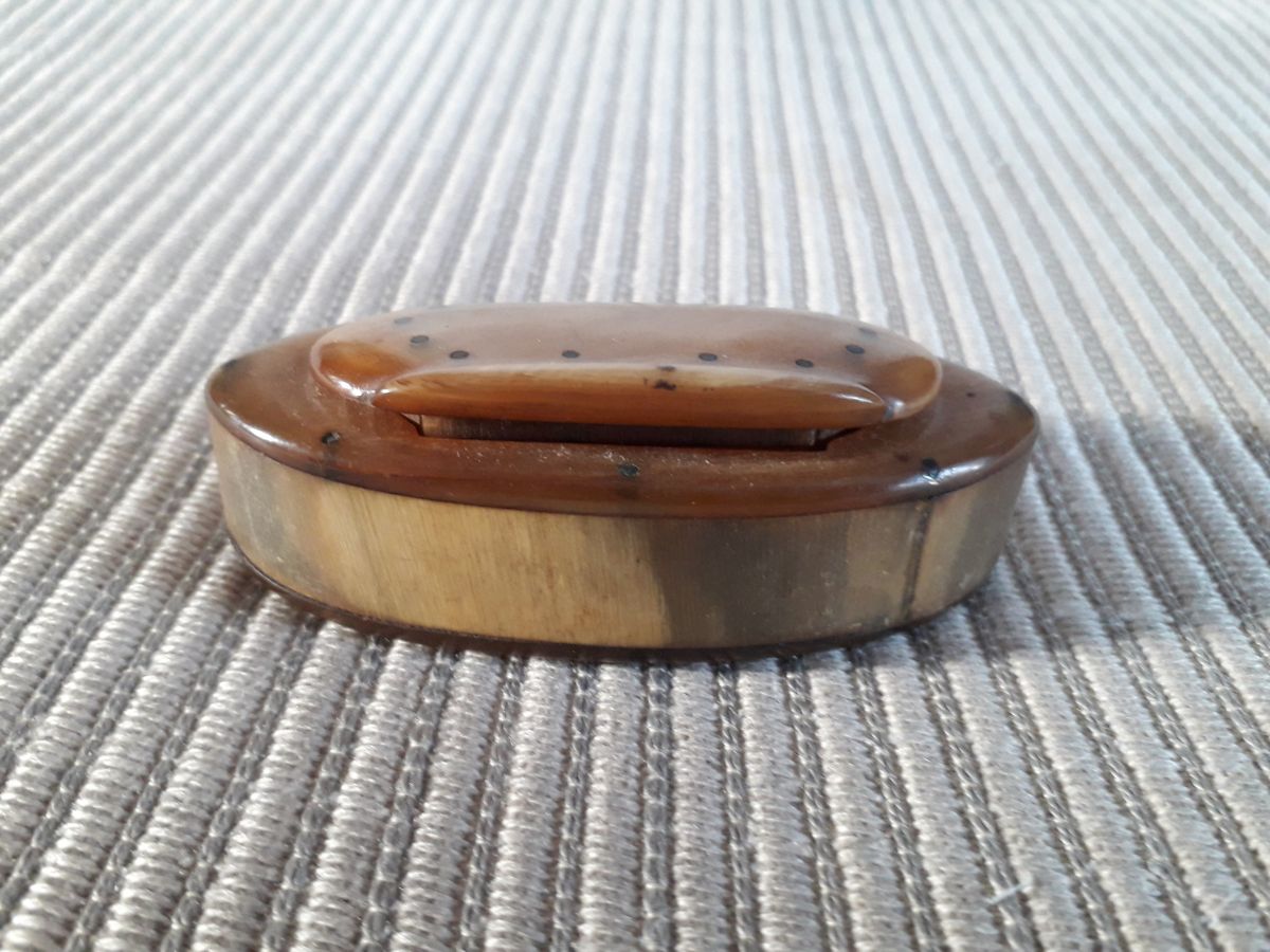 Tabatière ancienne en corne avec son couvercle. La tabatière est ovale avec une finition en excellent état.