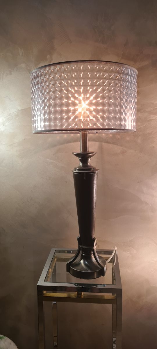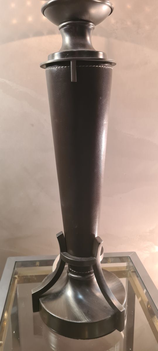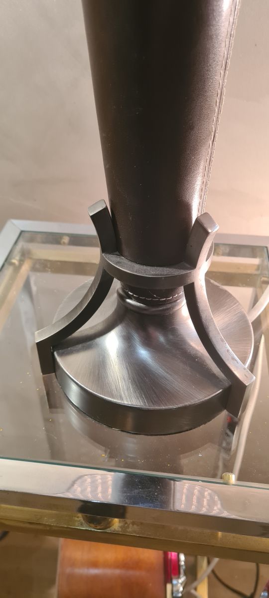 grande lampe 1970 gainé de cuir marron en fer brosser 48xh74