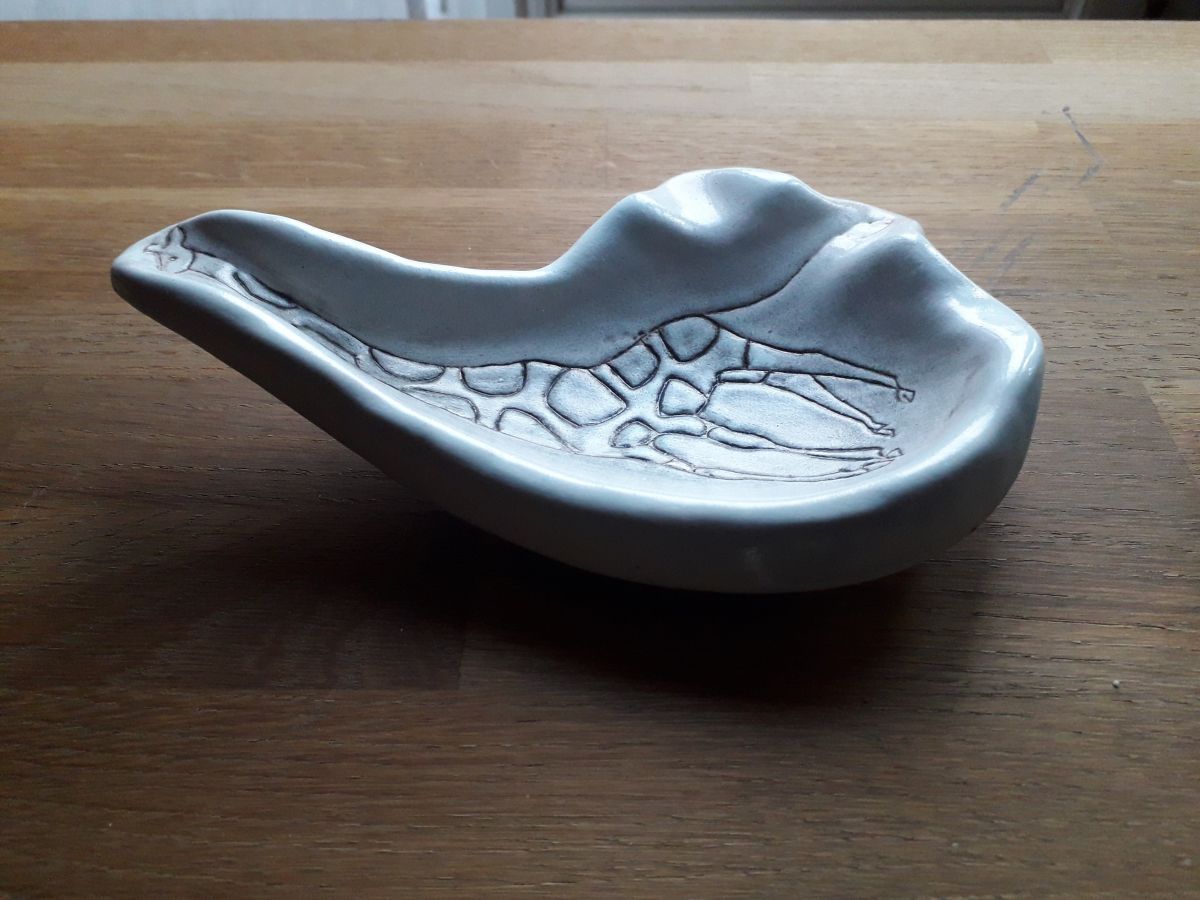 Vide-poche vintage très original en céramique avec un décor de girafe. La céramique est signée.