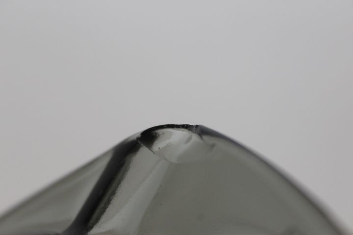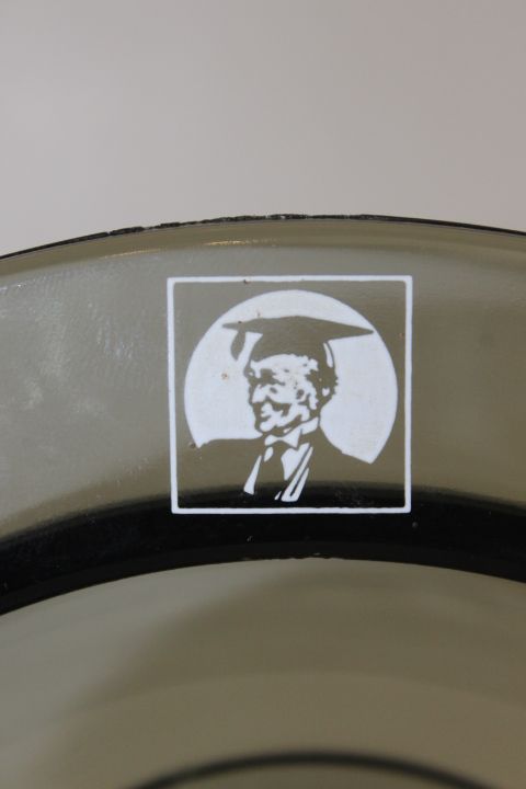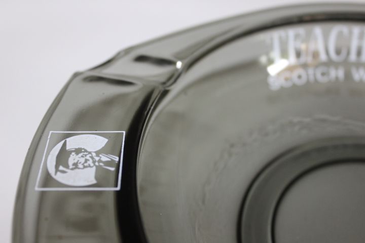 Grand cendrier publicitaire de la marque de whisky Teacher’s. Ce modèle rare se caractérise par son verre fumé gris en vogue dans les années 70/80. Il est en bon état, sauf un manque de verre au verso (voir photos), non visible quand le cendrier est dans sa position normale.