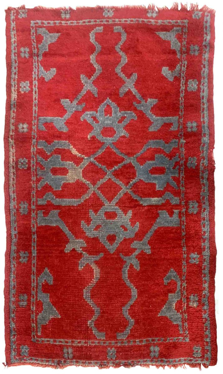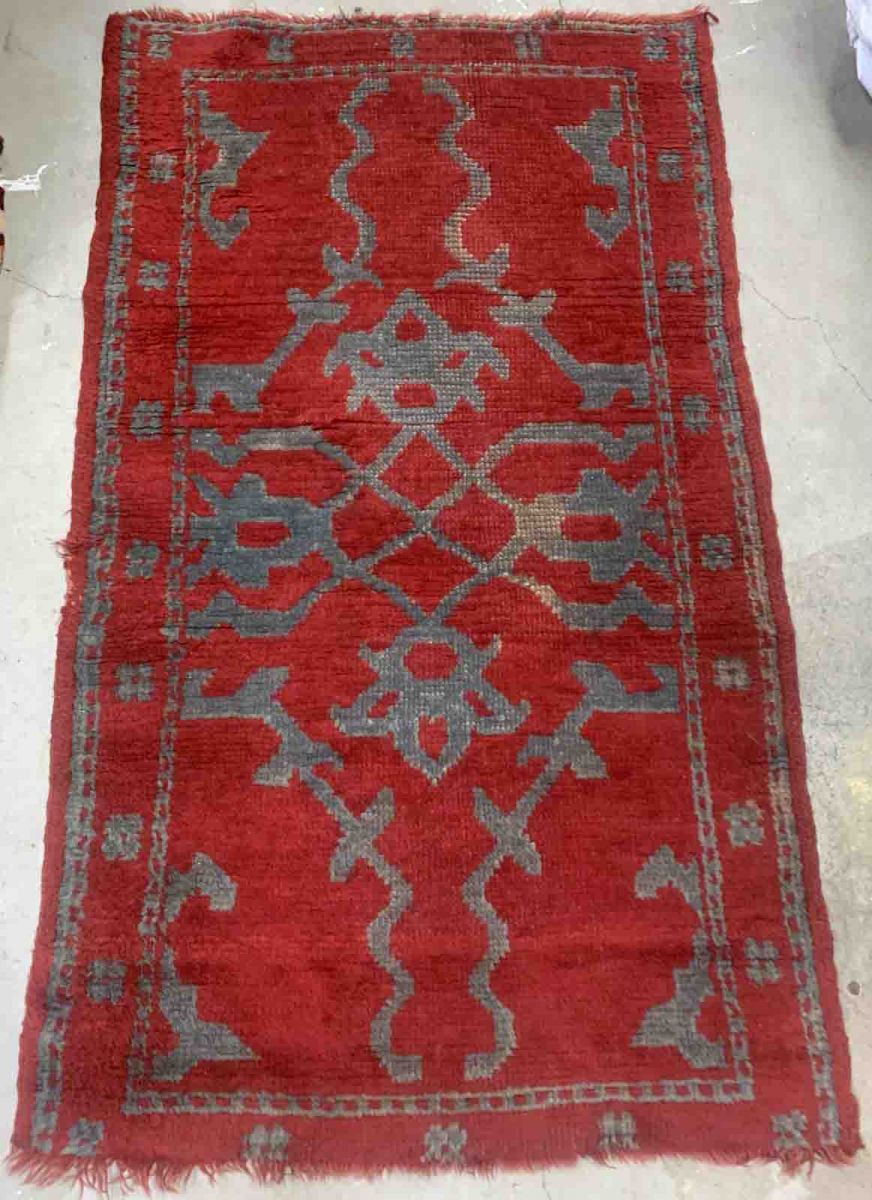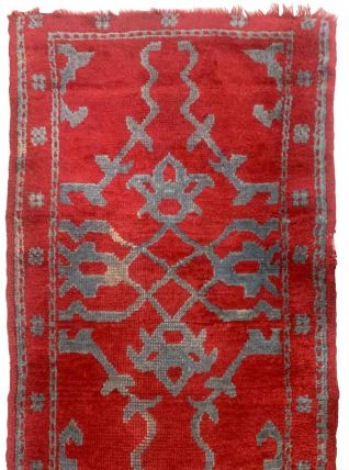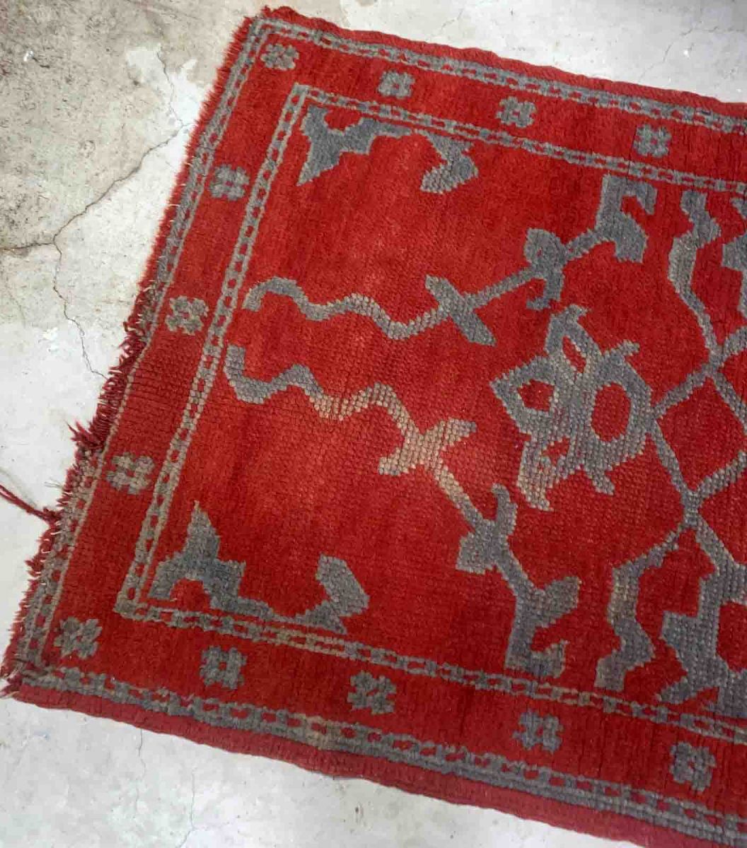 Handmade antique Turkish red rug from Oushak region. The rug is from the end of 19th century in original condition, it has some signs of age.