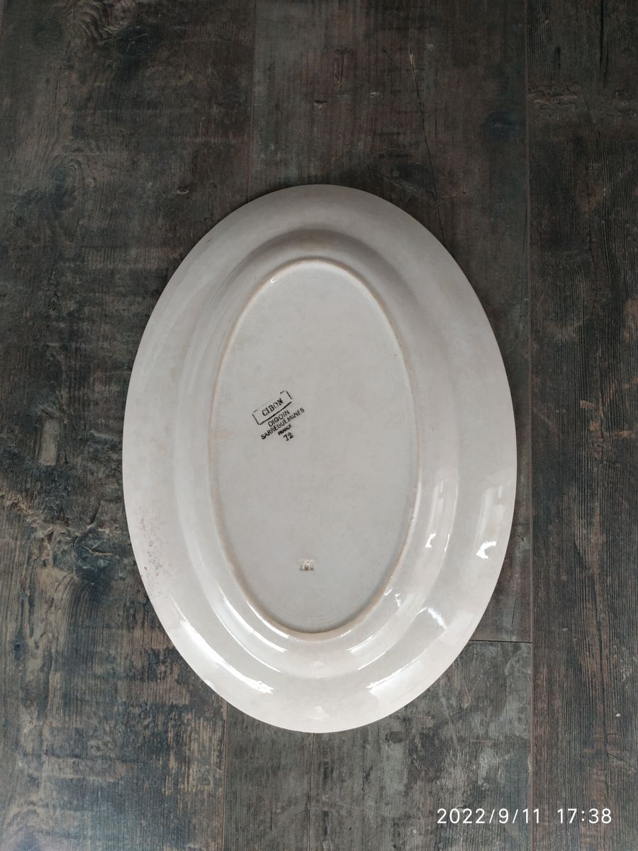 Plat ovale Digoin Sarguemines modèle Gibon, bon état général , à noter toutefois quelques tâches sur la faïence et un petit éclat au dos (voir dernière photo)