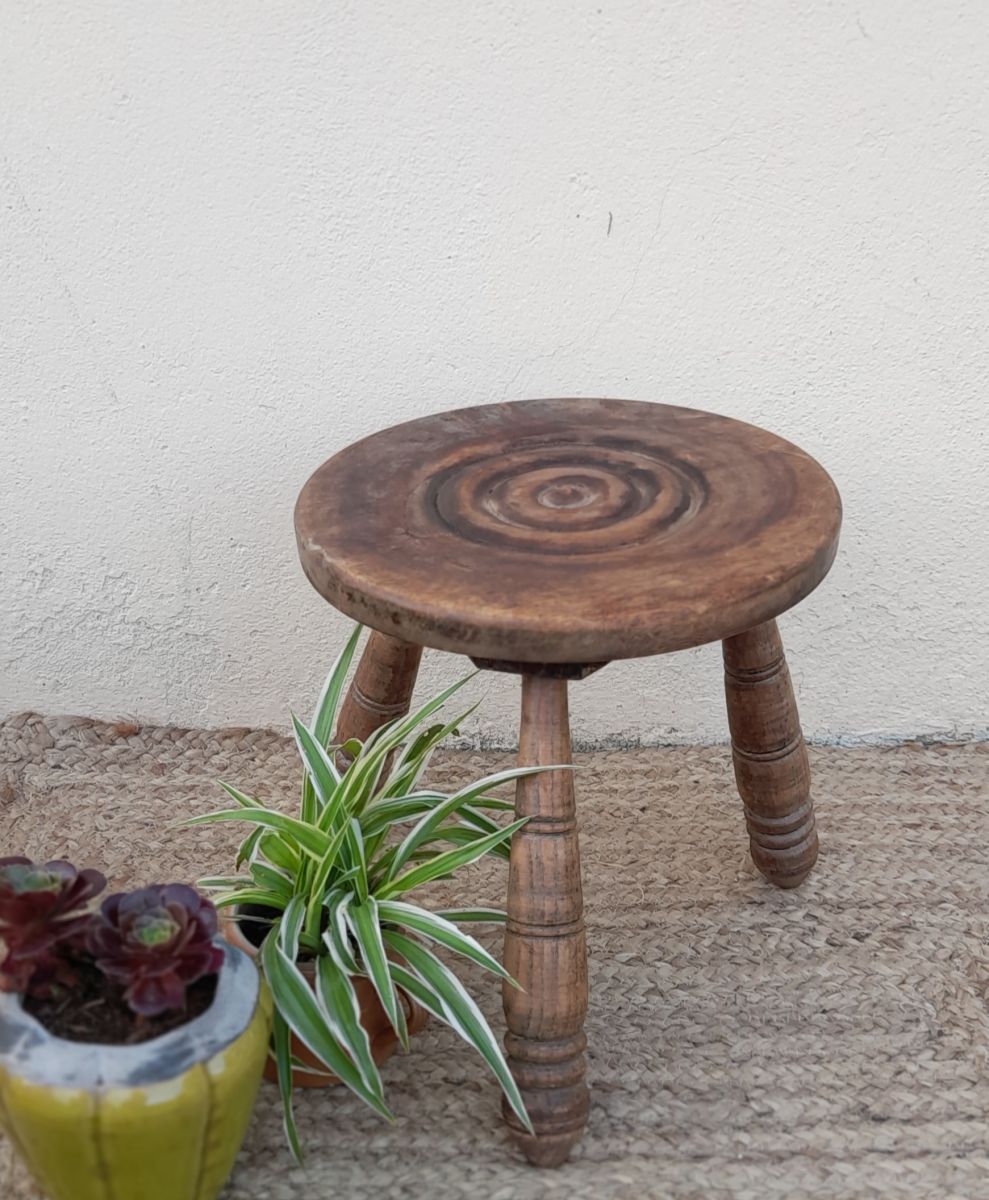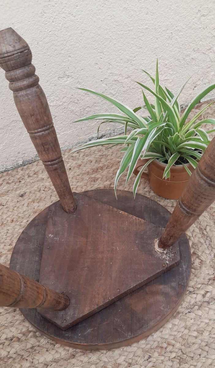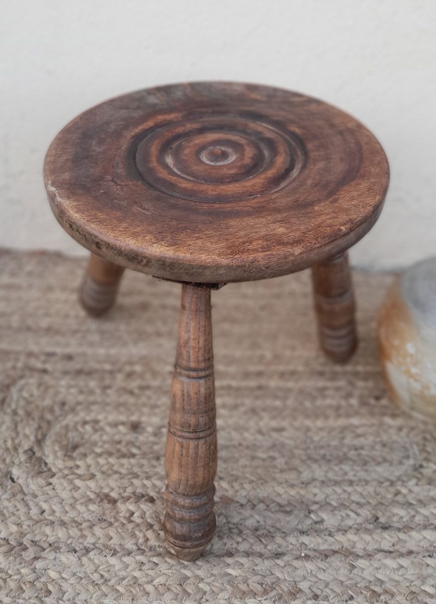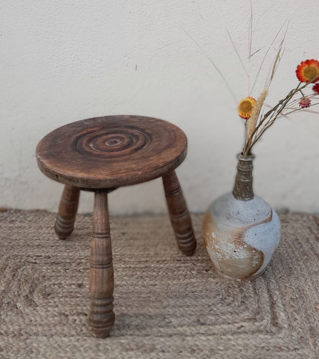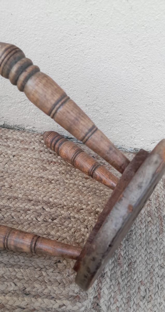 Ancien tabouret de berger, pour la traite des brebis. Tabouret de caractère, tout en bois tourné (pieds en forme de quille), charmant comme objet de déco à détourner en porte plante ou bout de canapé ou en table de chevet, les idées ne manquent pas. Hauteur: 31 cm, diamètre assise: 29 cm. Dimension de pied à pied: 37 cm. Épaisseur de l'assise 3 cm. En bel état. A noter sur le dessous, l'un des pieds a été consolidé avec de la pâte à bois et quelques pointes ont été ajoutées (il faut dire que ce tabouret a servi quelques décennies, on lui pardonne donc ce petit bobo lié à l'usage) hormis ce point qui n'enlève en rien la solidité de l'objet, rien à redire!.