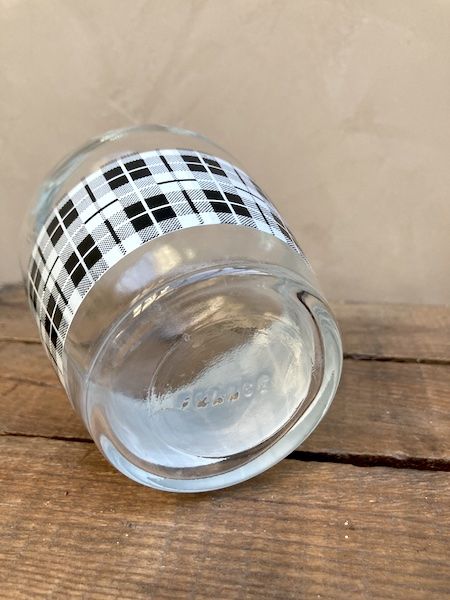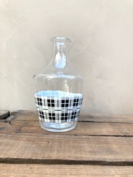 Cette jolie carafe vintage à carreaux noirs et blancs est typique des années 60. Elle est marquée France et est en très bon état.