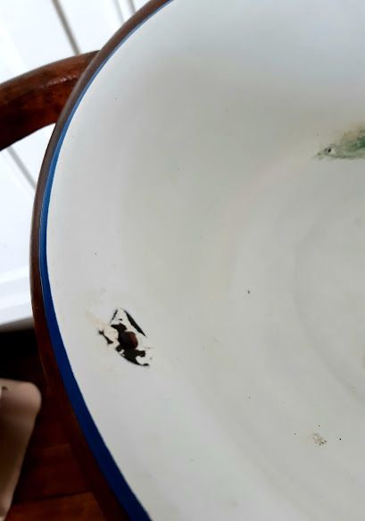 Bassine en métal émaillé blanche (usures et trou).