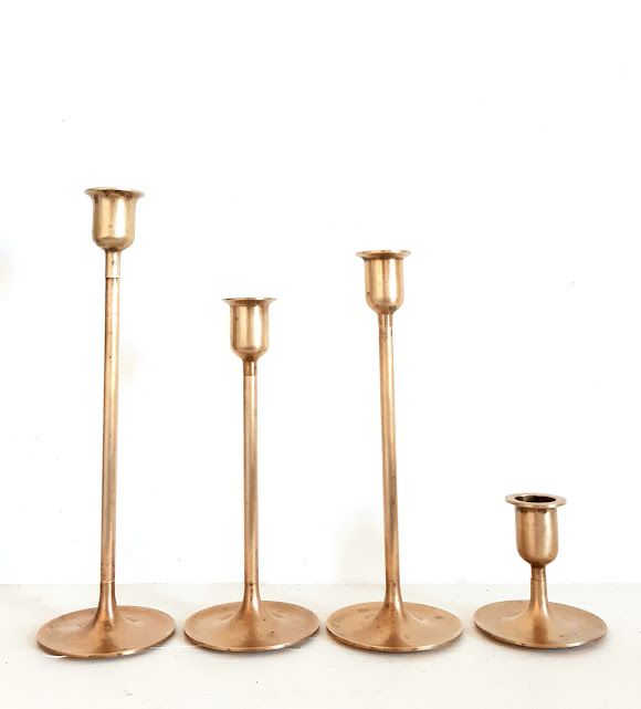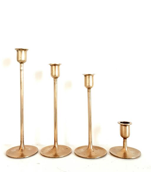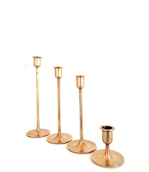 Set de quatre bougeoirs en laiton doré, de quatre taille différentes, forme dite "tulipe".
