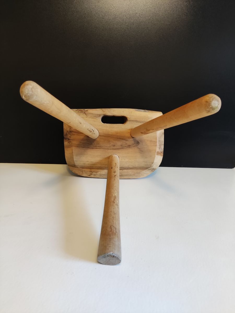 tabouret de campagne en bois brut massif et clair