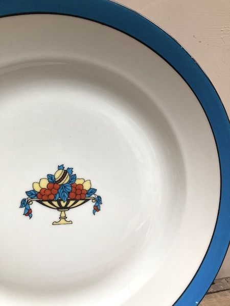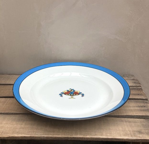 L'originalité du décor et ses couleurs vives m'ont fait remarquer ce grand plat en porcelaine de Limoges T.L.B. lors d'une virée brocante. A coup sûr il fera de l'effet sur votre table ! Sa grande taille est également un bel atout.