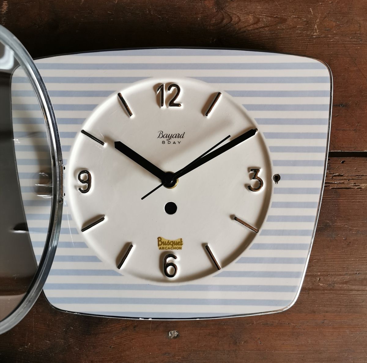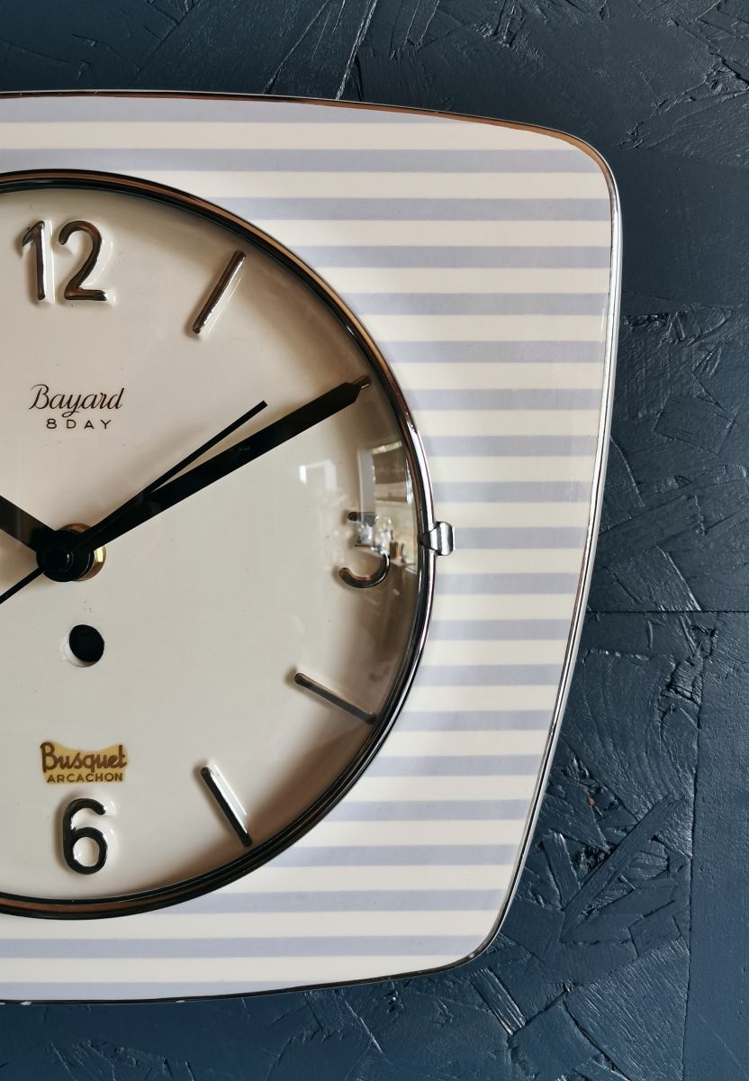Horloge céramique vintage pendule silencieuse "Bayard rayé"