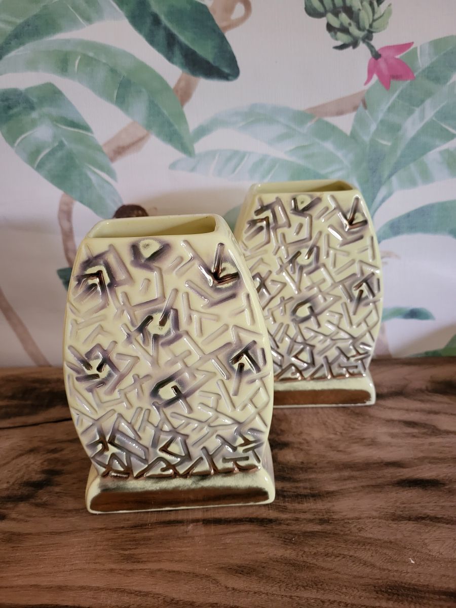 Paire de vase art deco très bon état général pas d'éclat léger usure sur la couleur or