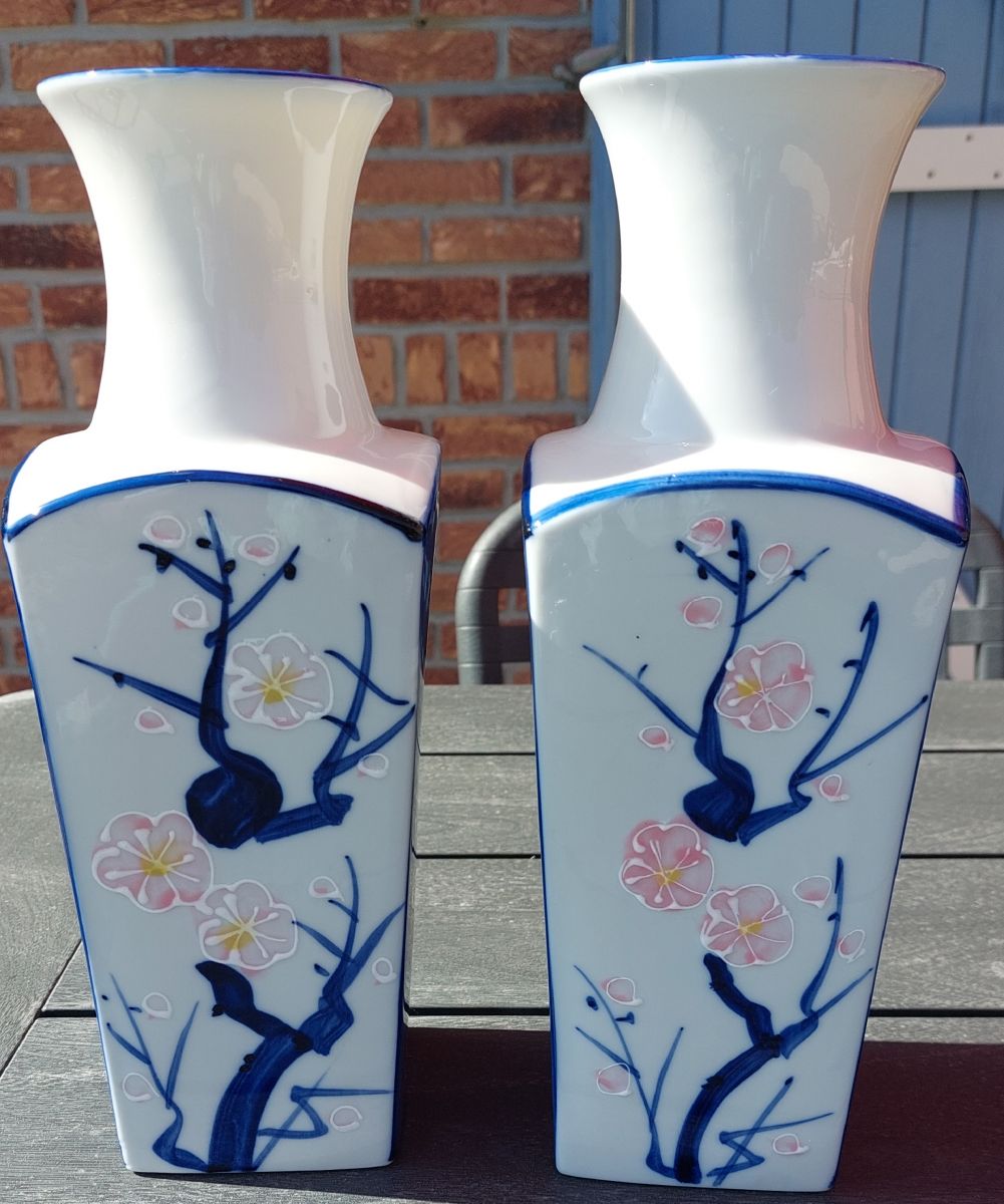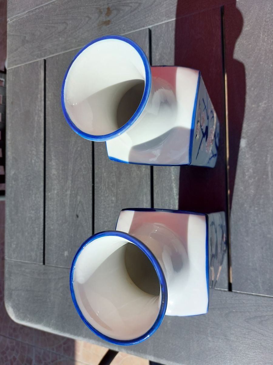 PAIRE DE VASE EN PORCELAINE DU JAPON PEINT A LA MAIN VINTAGE