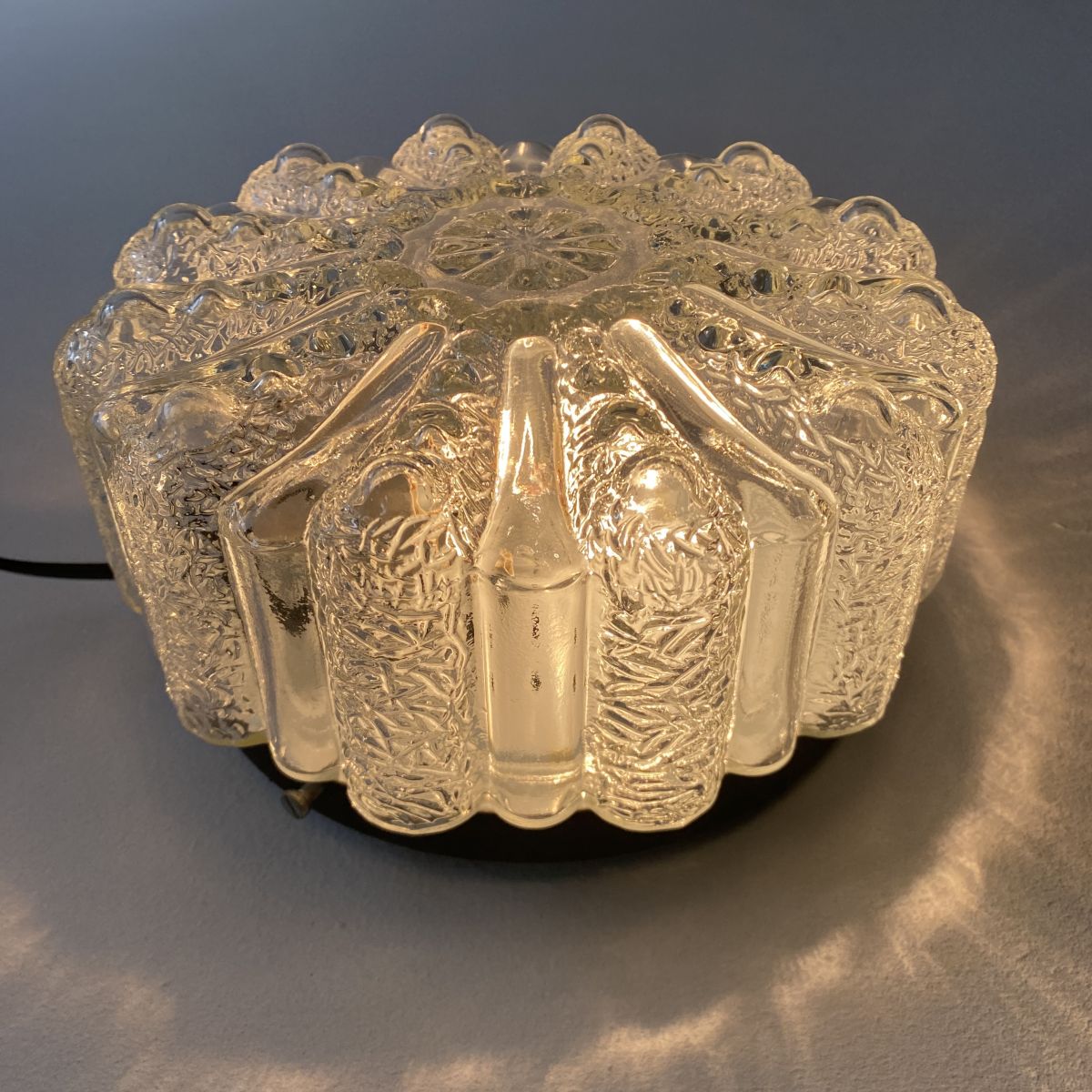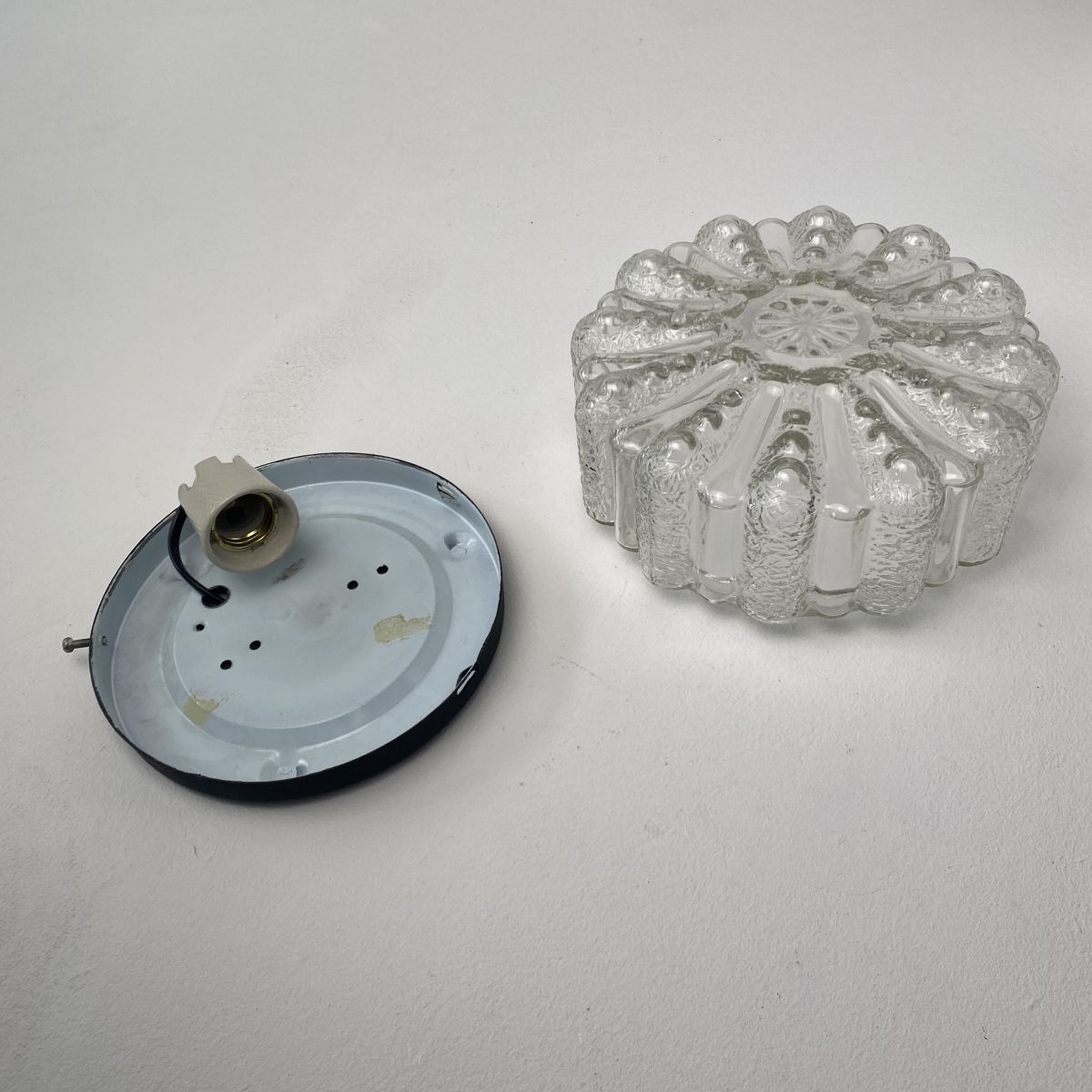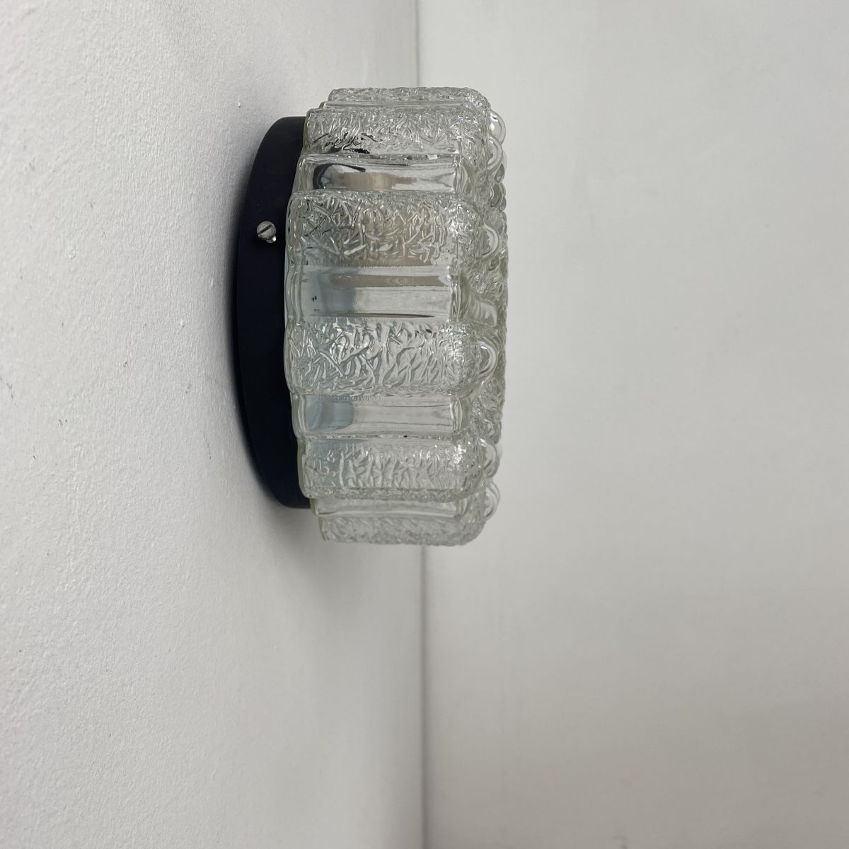 Anciennes appliques vintage en verre moulé des années 1960. Base en métal noir. Belle lumière. En très bel état.