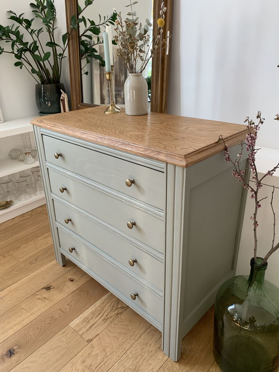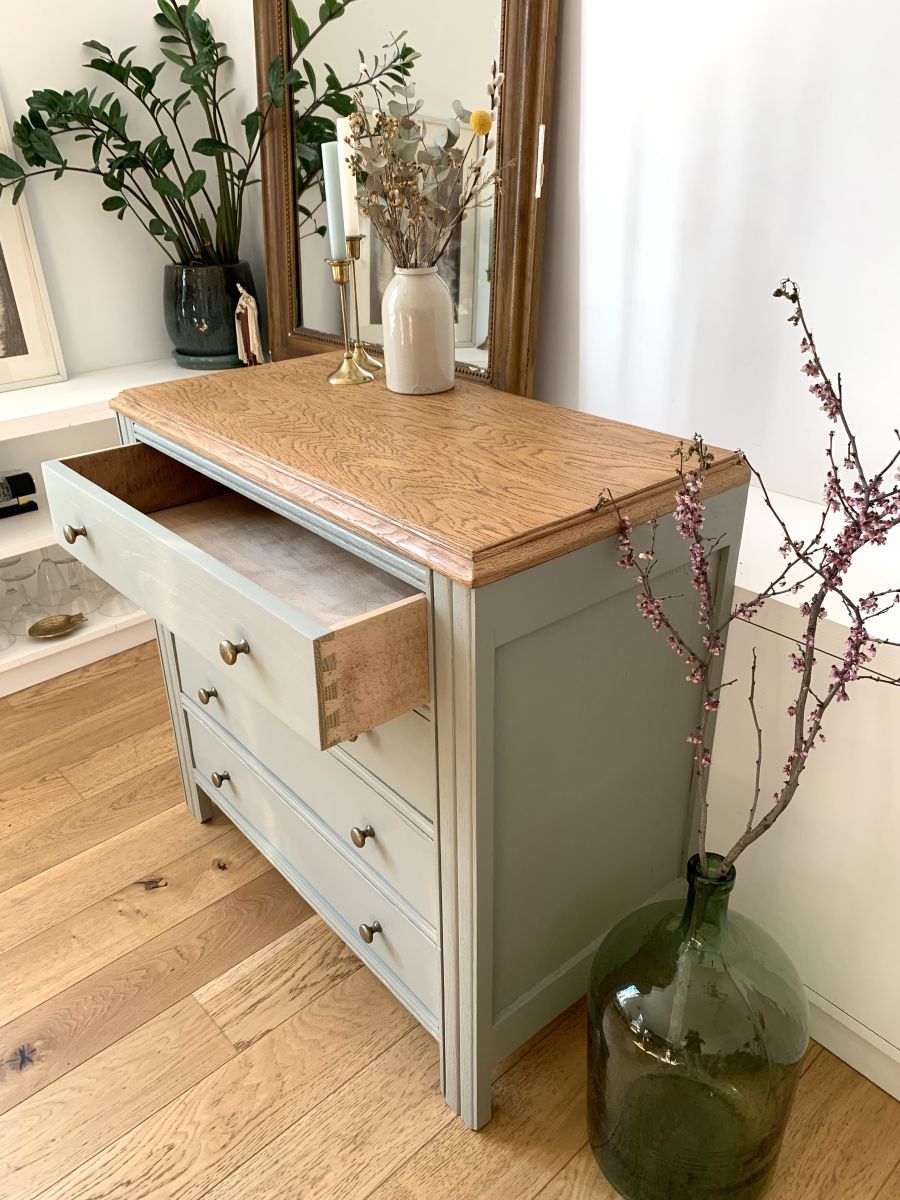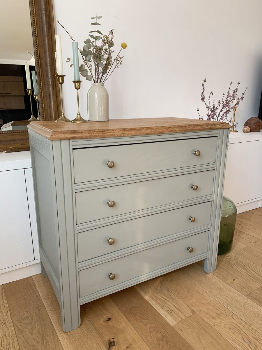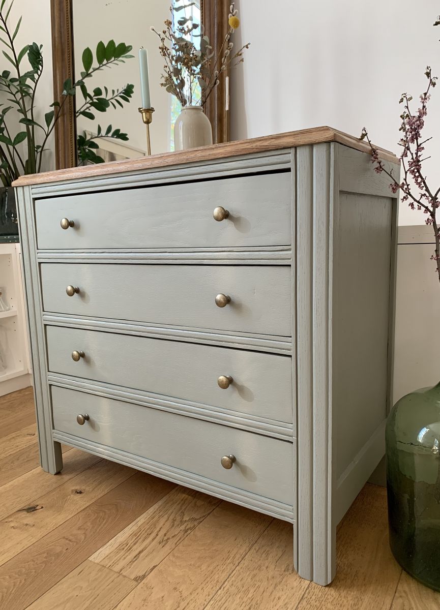 Elle a été mise en beauté avec la douce nuance "Gris chaud" de chez Ressource.