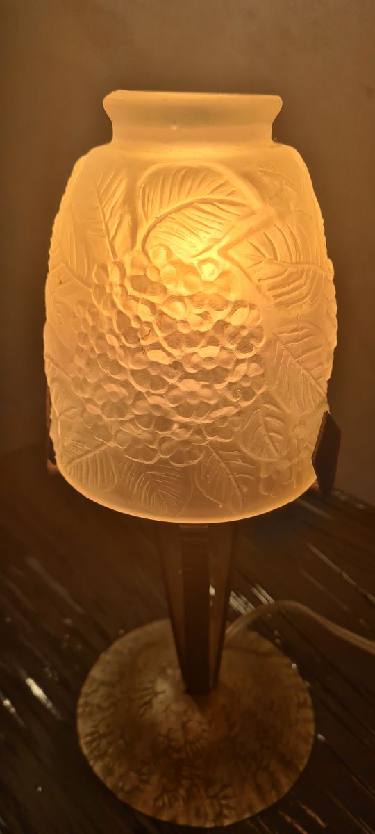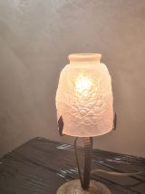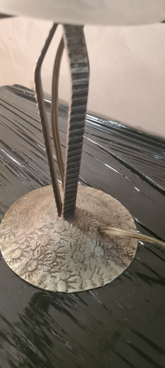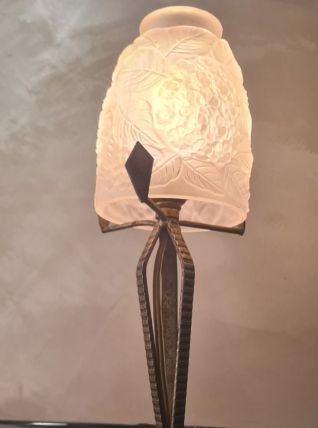 lampe fer forgé 12x30, tulipe verre moulé pressé tres belle non signé 1930 a 40