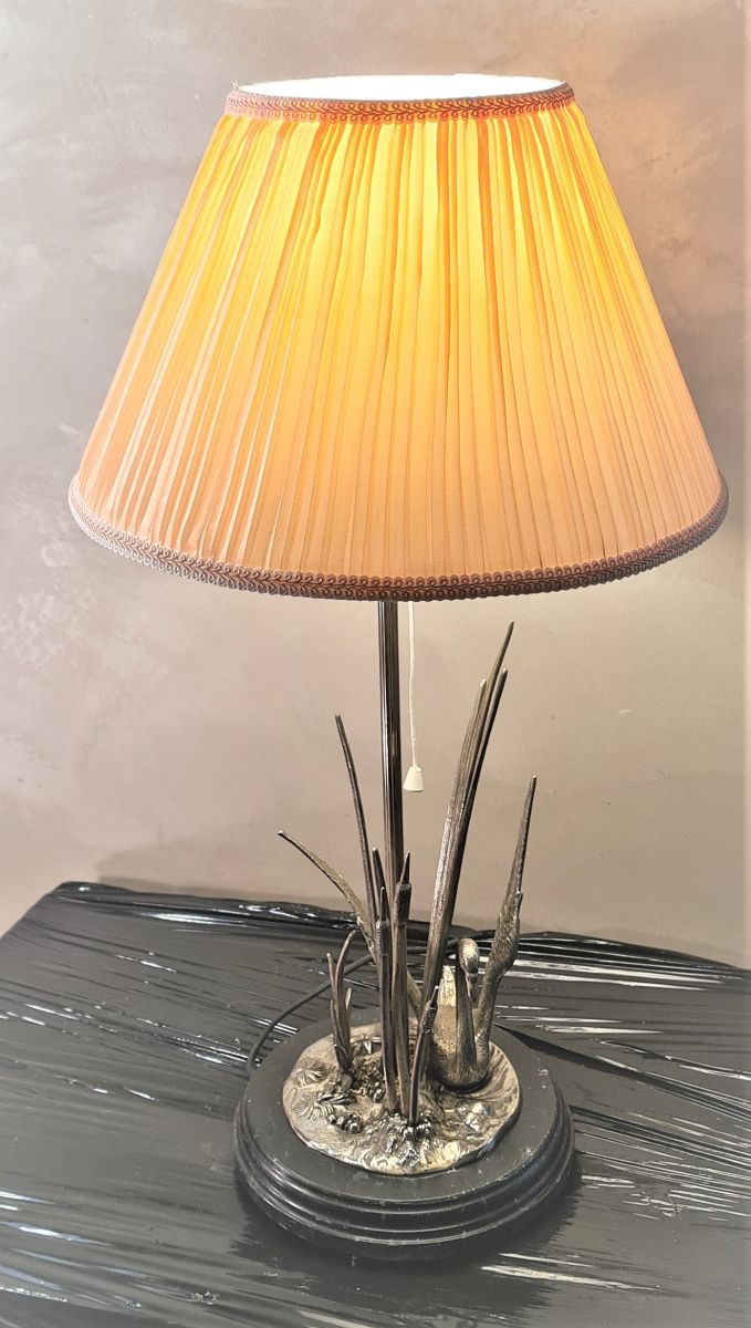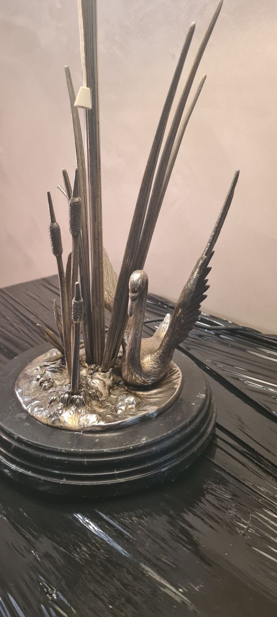 Lampe de Bureau en Marbre et Métal Plaqué Argent cigne Décor
