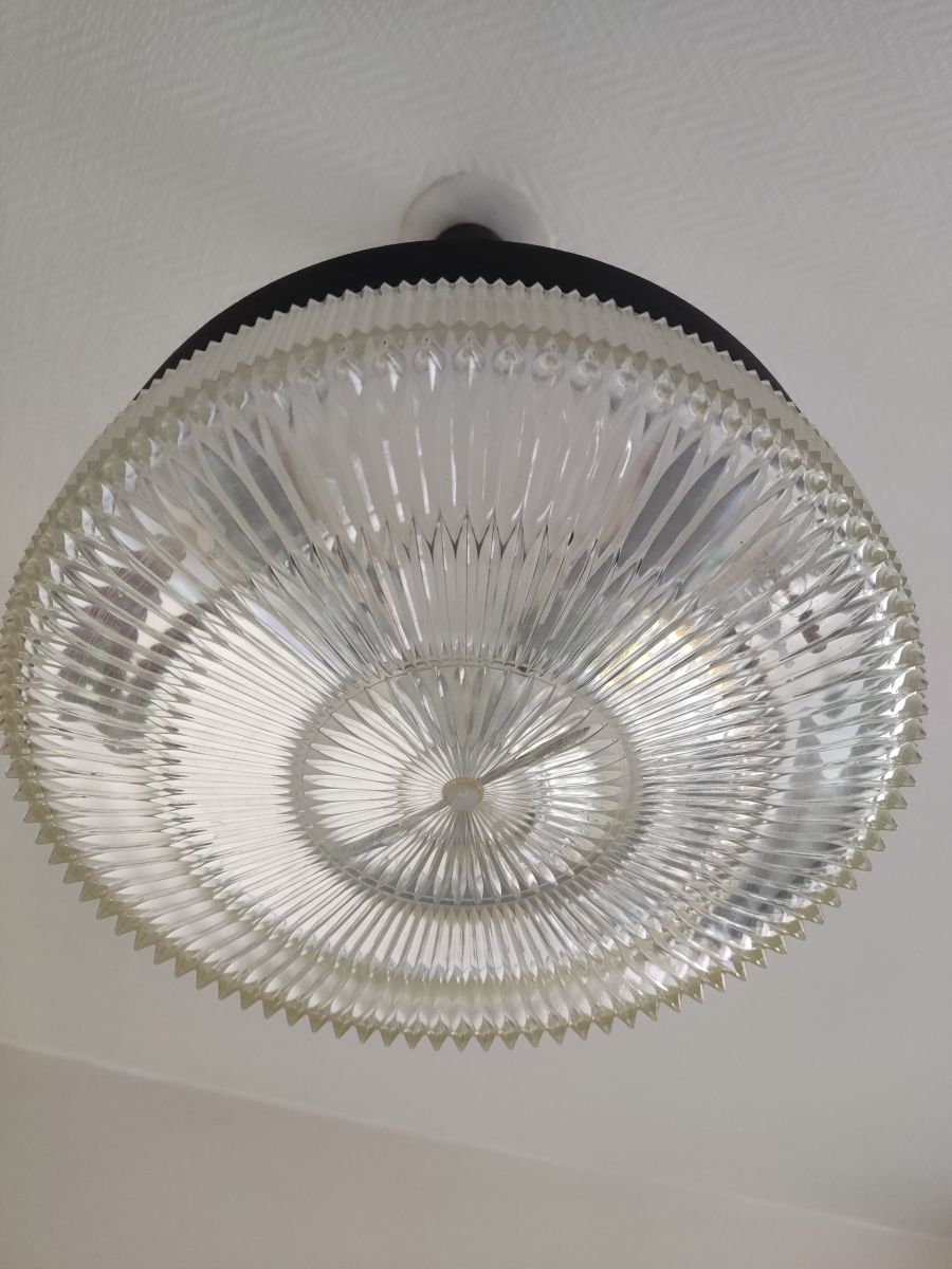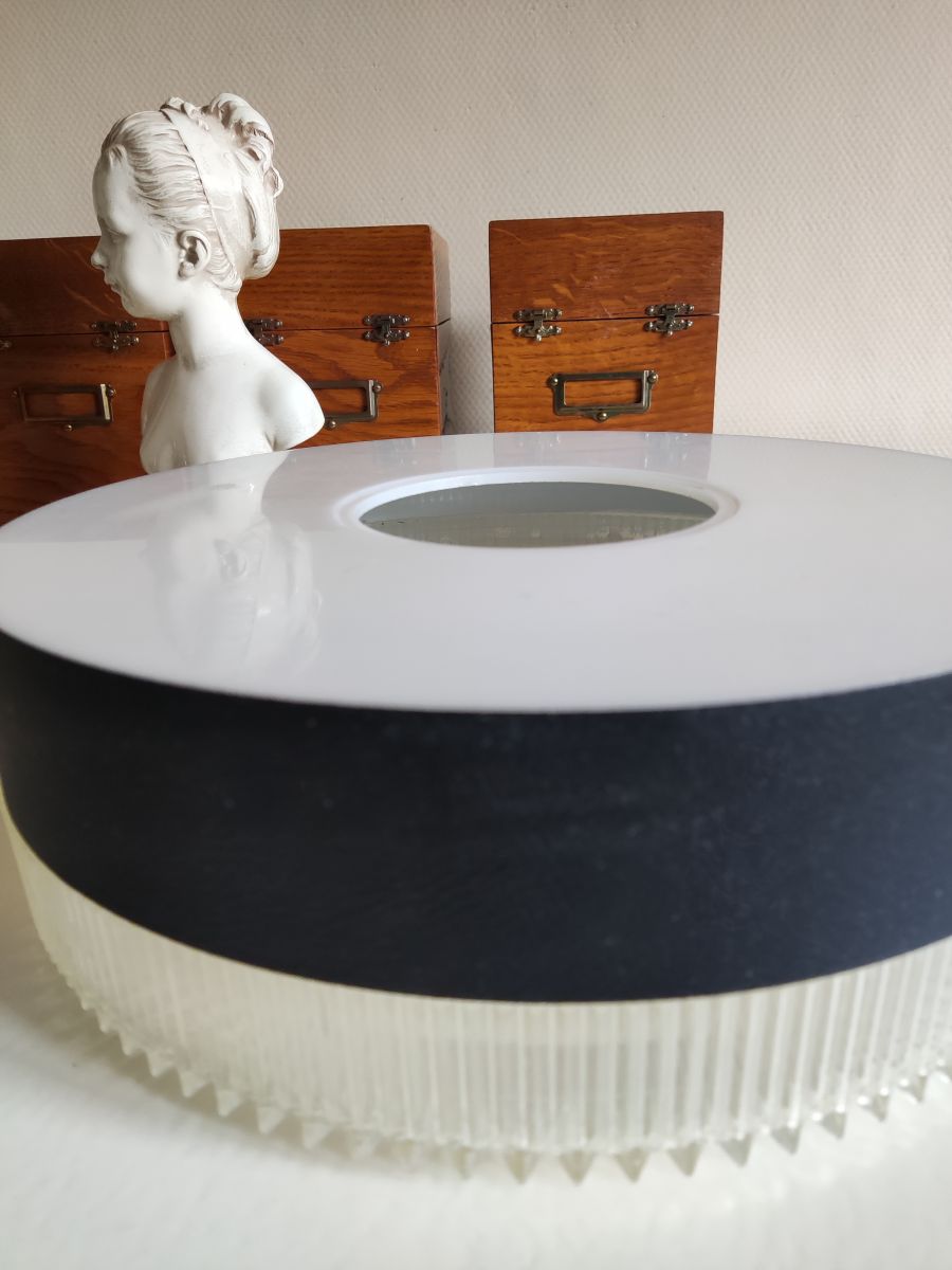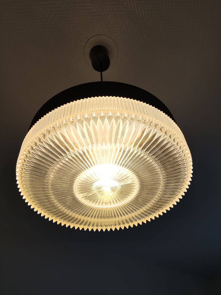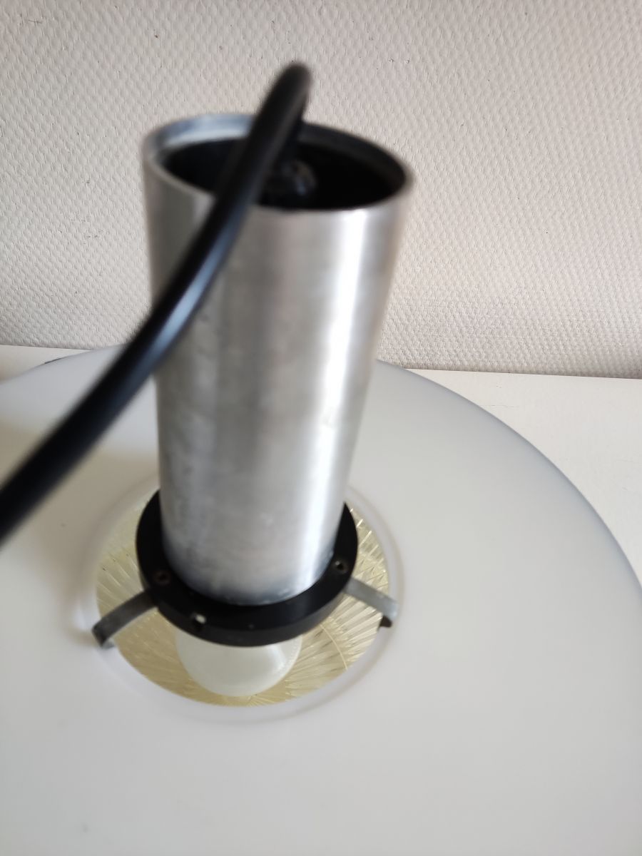 suspension vintage des années 50 noire blanche en plastique et en alu brossé