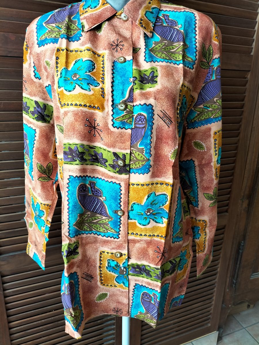 Chemise des annéees 80 à manche longue- multicolore - fente côté - petit col - peut se porter en sur-chemise - très bon état