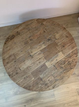 Finition : Le teck utilisé provient majoritairement d'anciennes maisons indonésiennes, dont certaines étaient peintes. Cela peut laisser, parfois, des traces de couleurs et des imperfections et éclats liés à son ancienne vie. Ce qui fait tout le charme de ces meubles uniques.