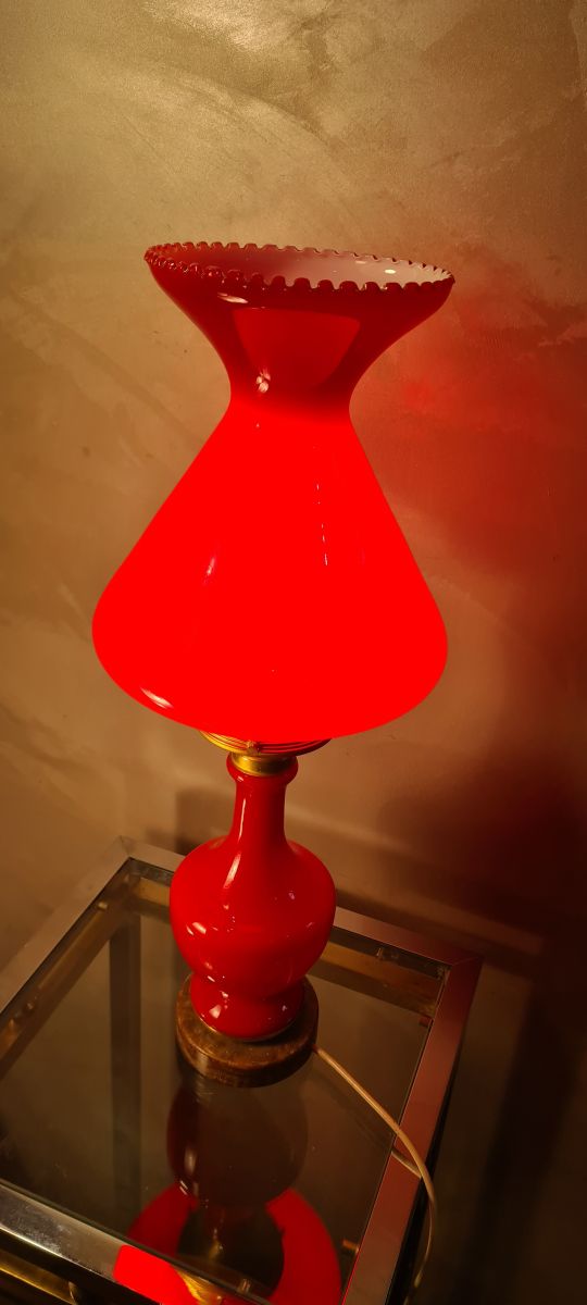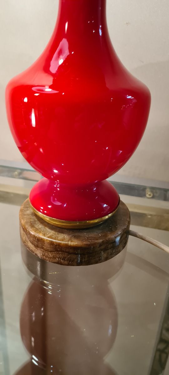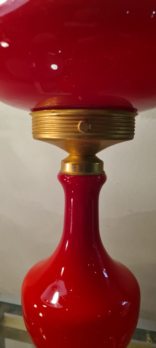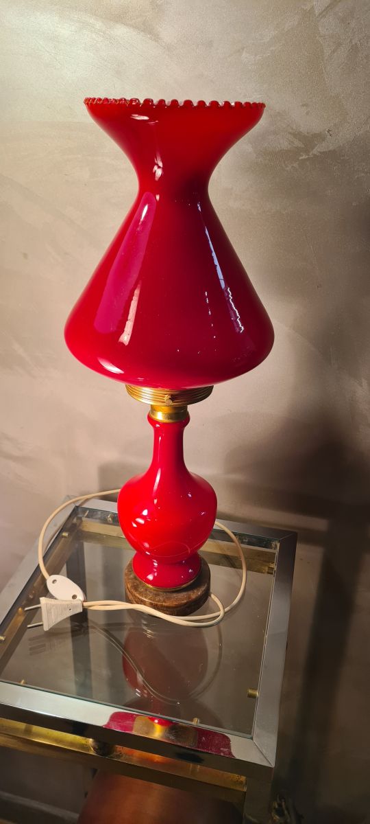 lampe opaline rouge tres belle 48x17 ,,electricité ok