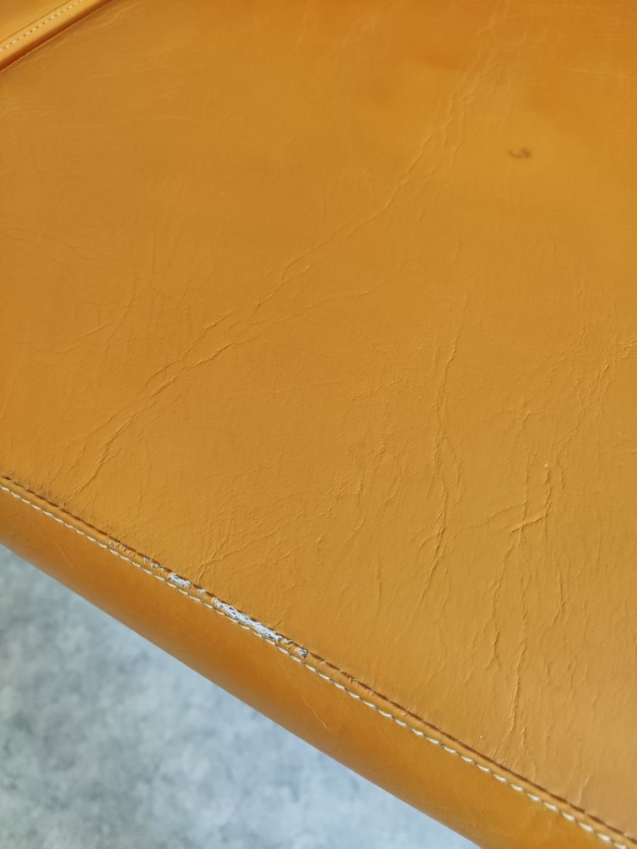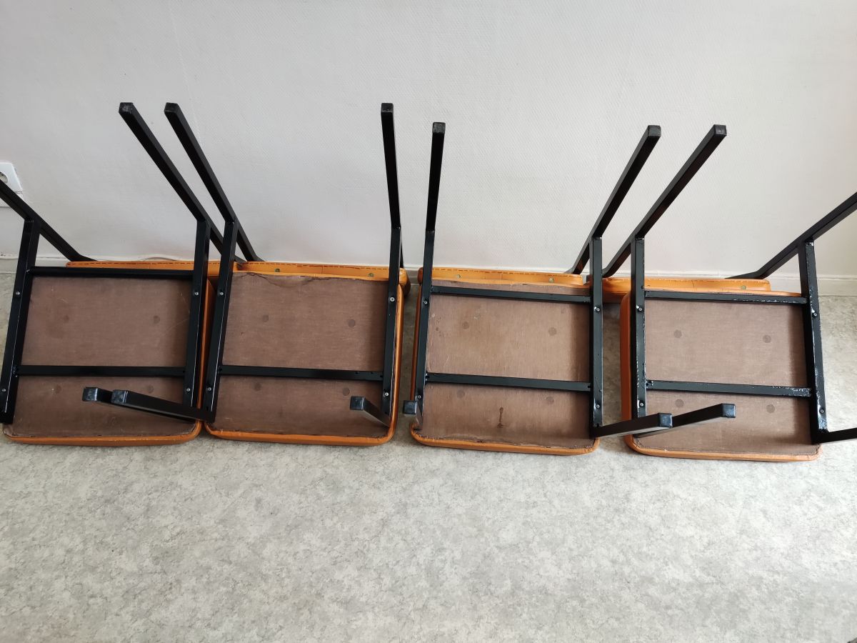 lot de 4 chaises en skai orange et pieds tube en métal noir des années 70