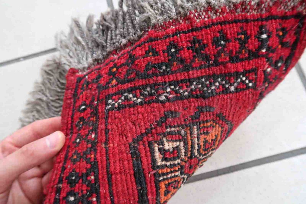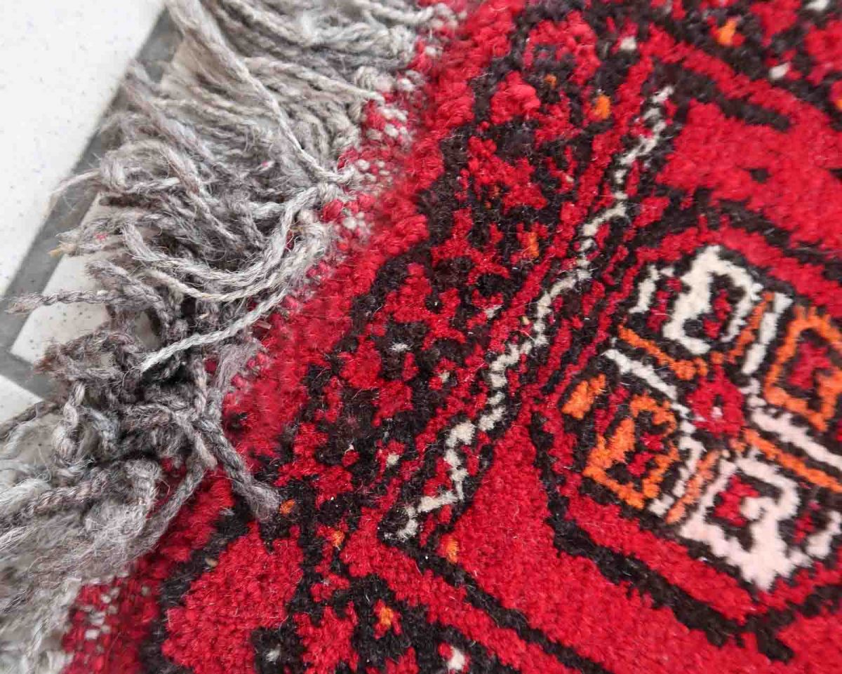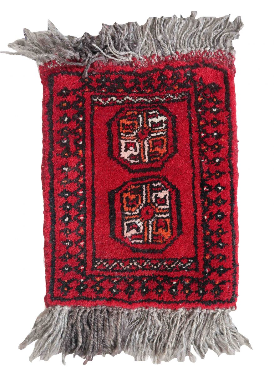 Handmade vintage Afghan Ersari mat in bright red shade. The rug is from the end of 20th century in original good condition. It can be used as a doll house rug.