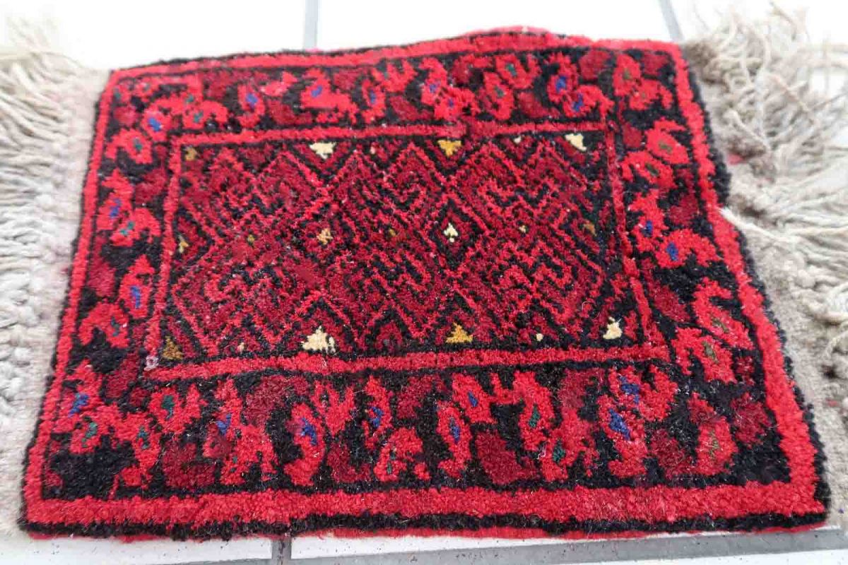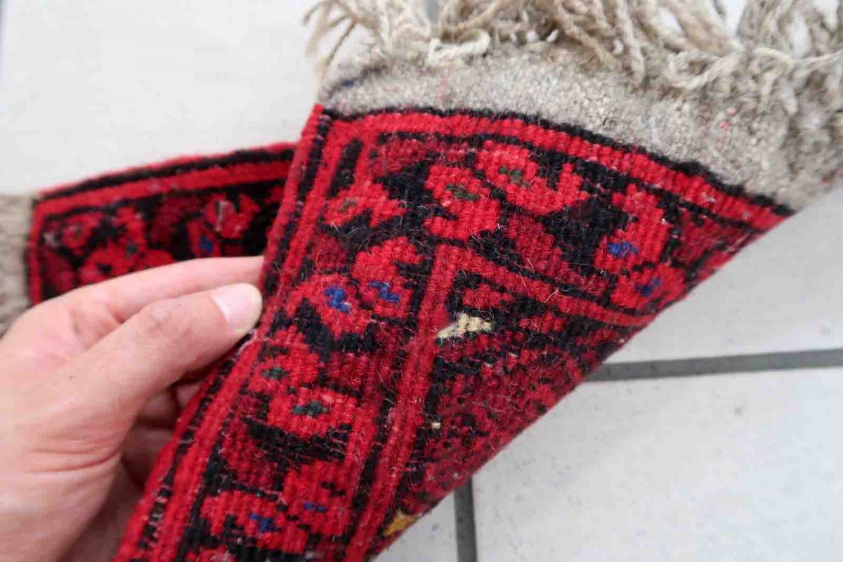 Handmade vintage Afghan Ersari mat in bright red shade. The rug is from the end of 20th century in original good condition. It can be used as a doll house rug.