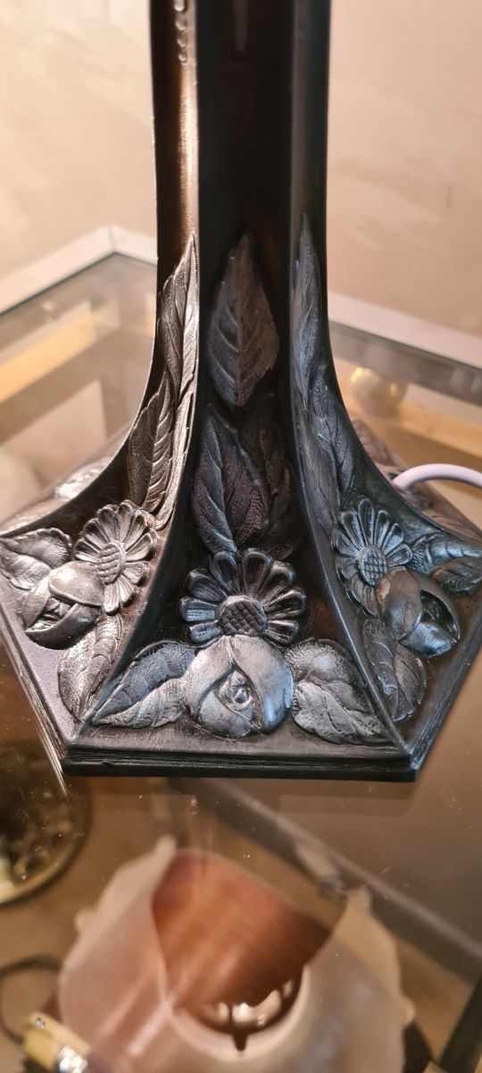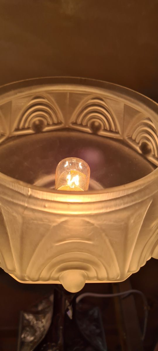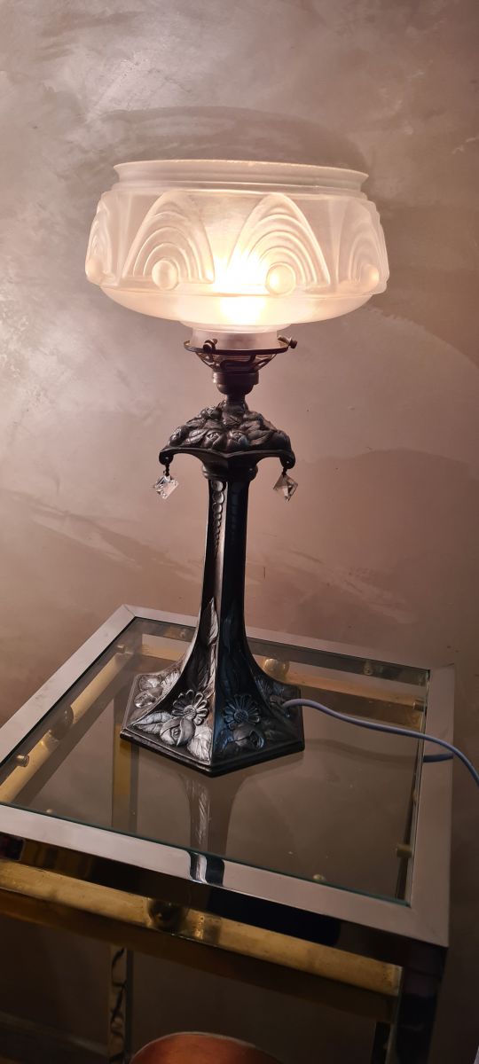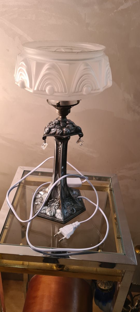belle lampe art deco regule patine argent 1920 a 40 ,,,,,,verre moulé elec refait