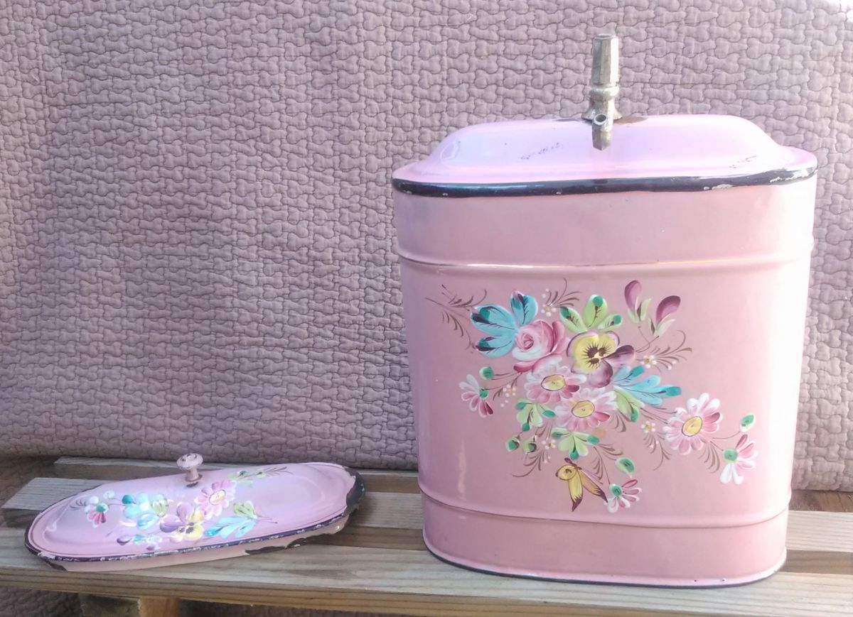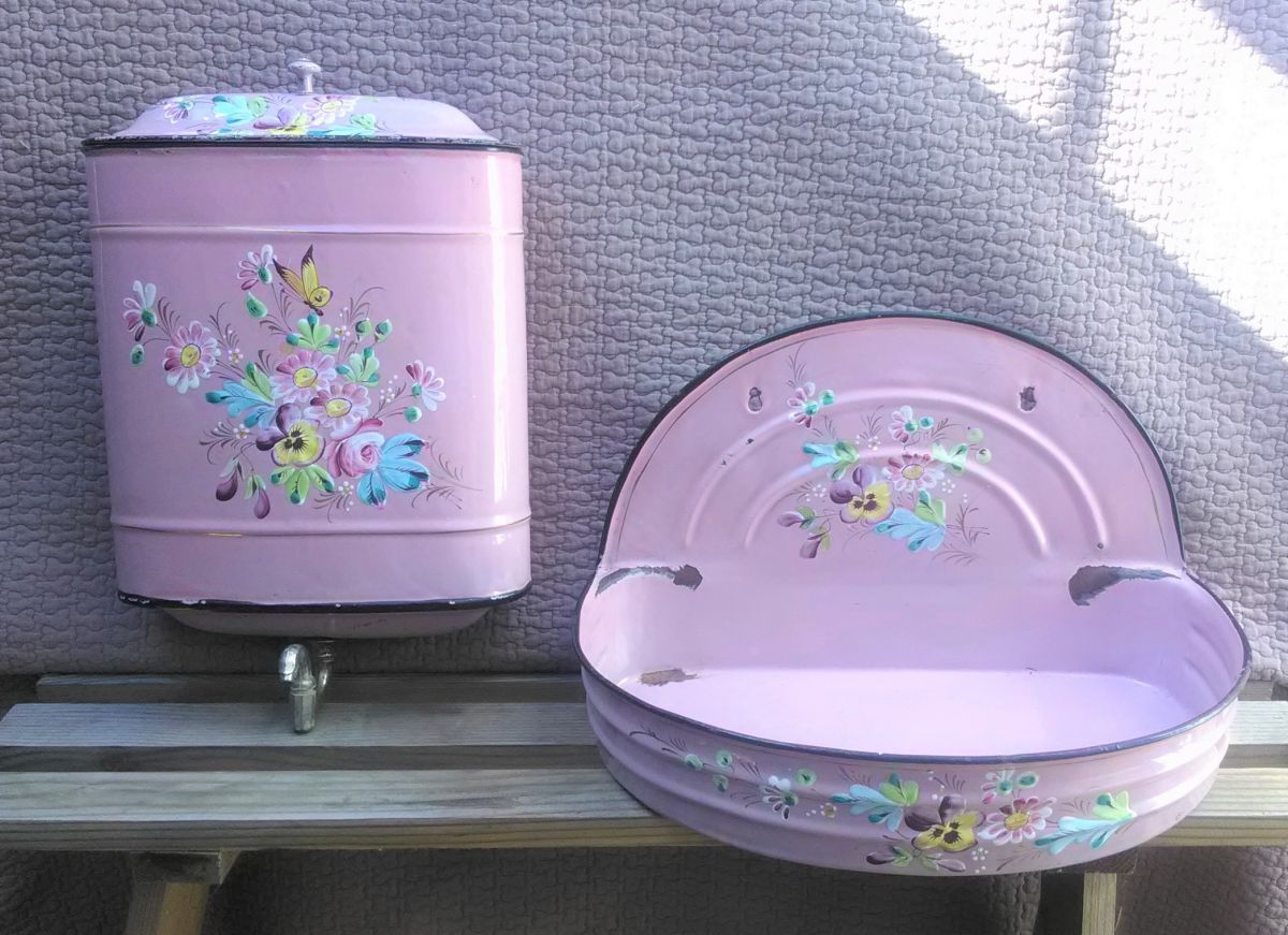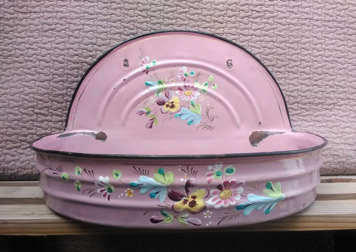 Fontaine à eau murale en tôle émaillée (décor floral)
