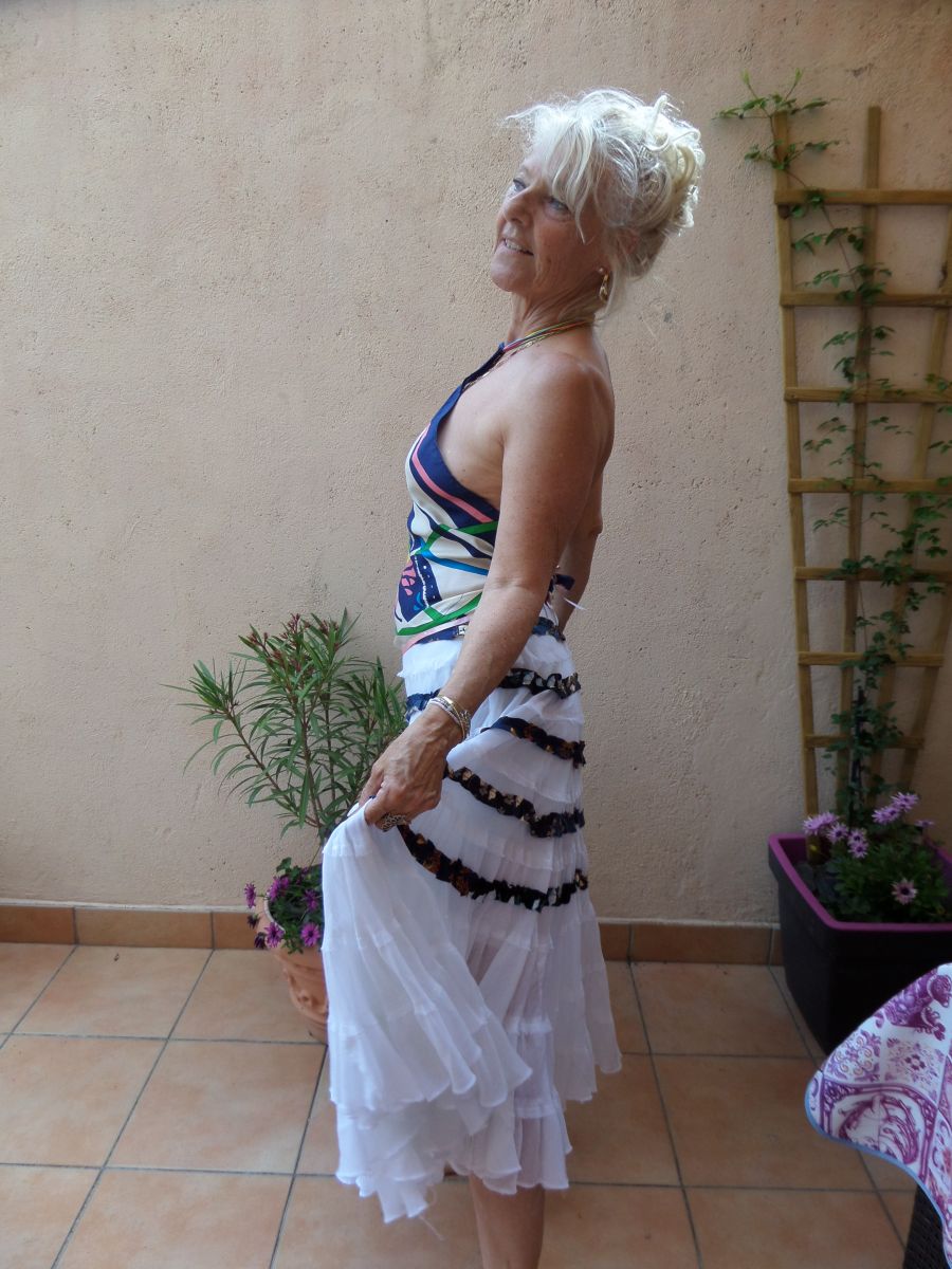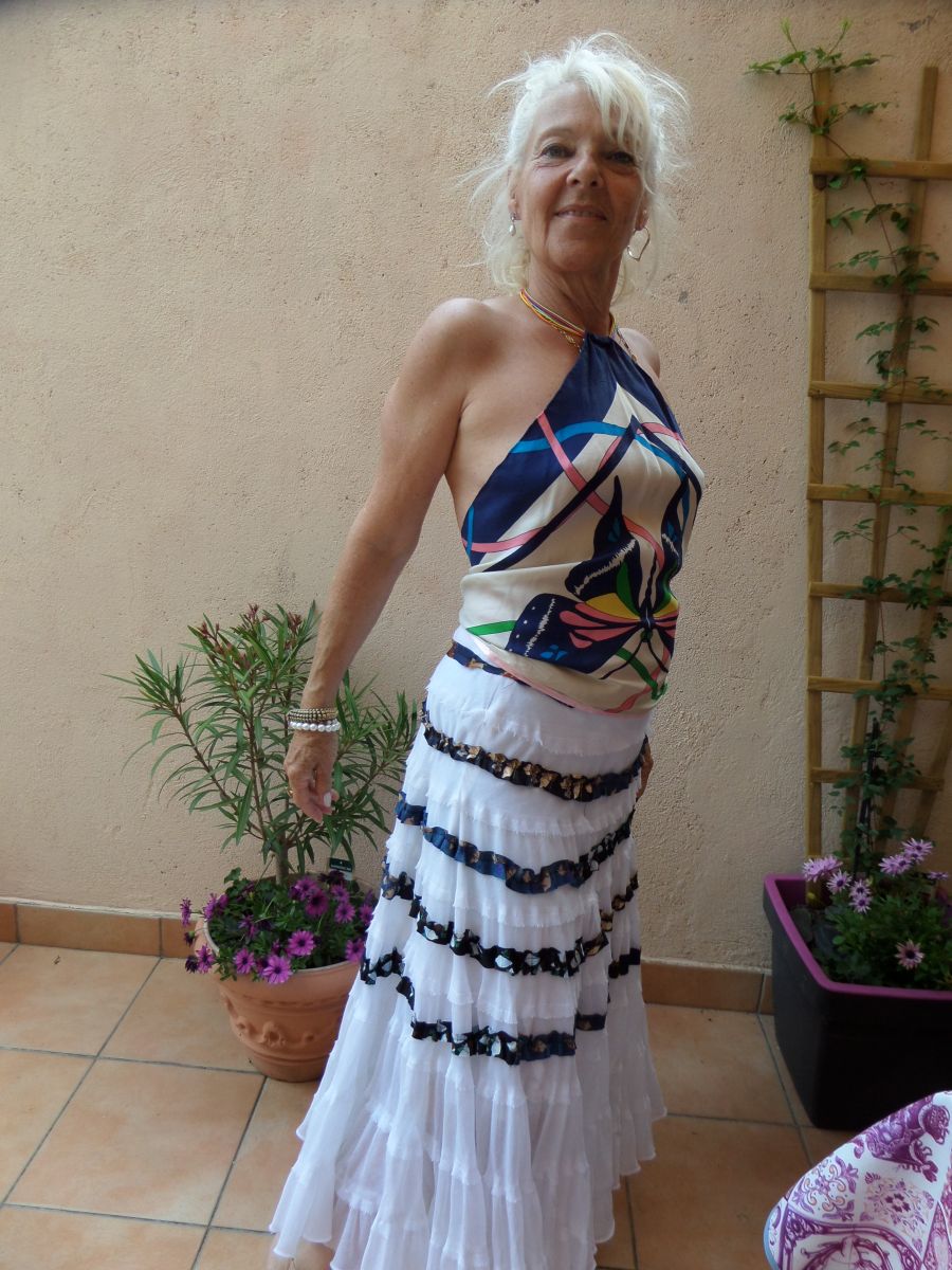 Carré foulard soie roulotté main top haut court création Fr