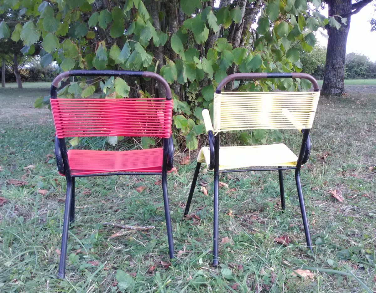 Paire de chaises enfant en métal et scoubidou