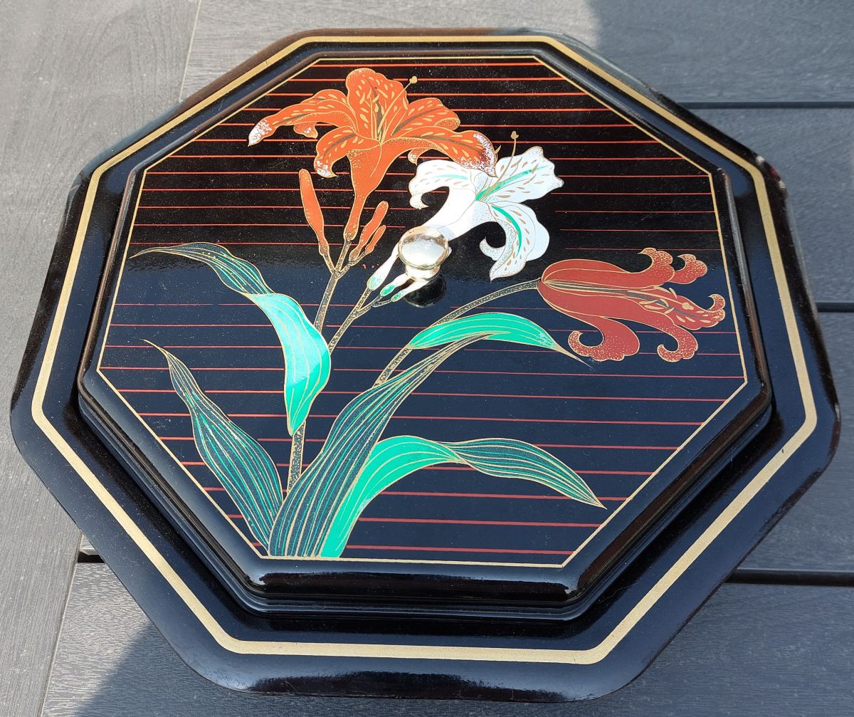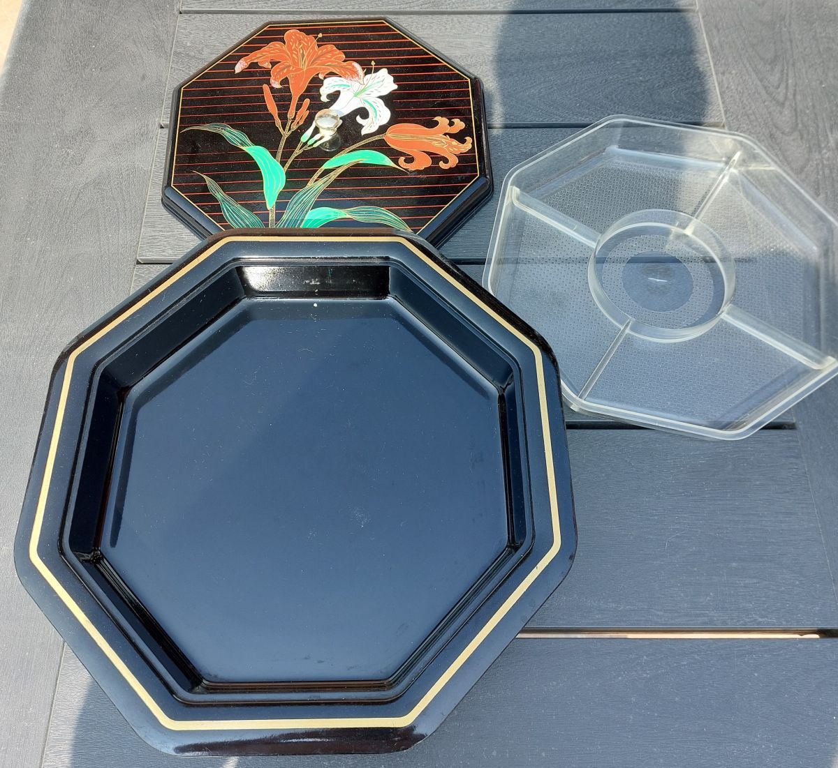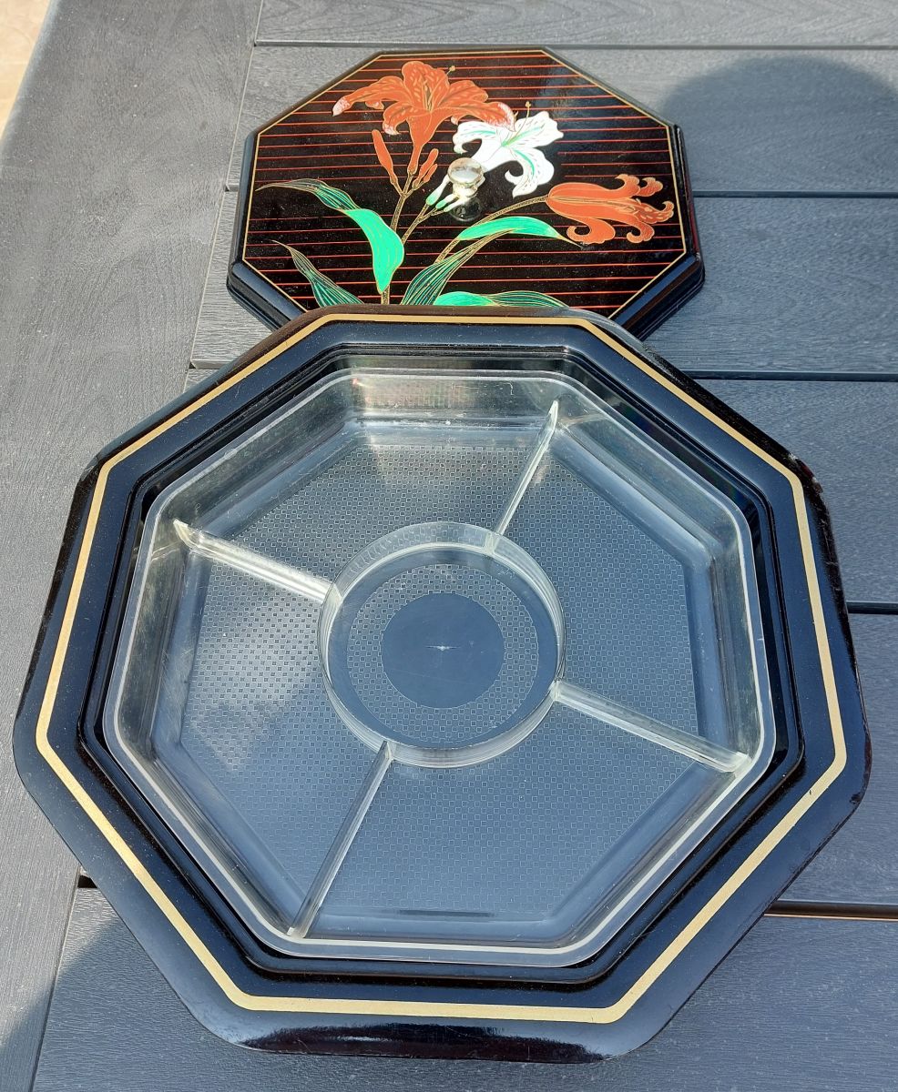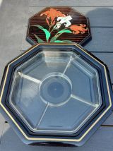 PLATEAU OCTOGONAL JAPONAIS APERITIF TOURNANT VINTAGE