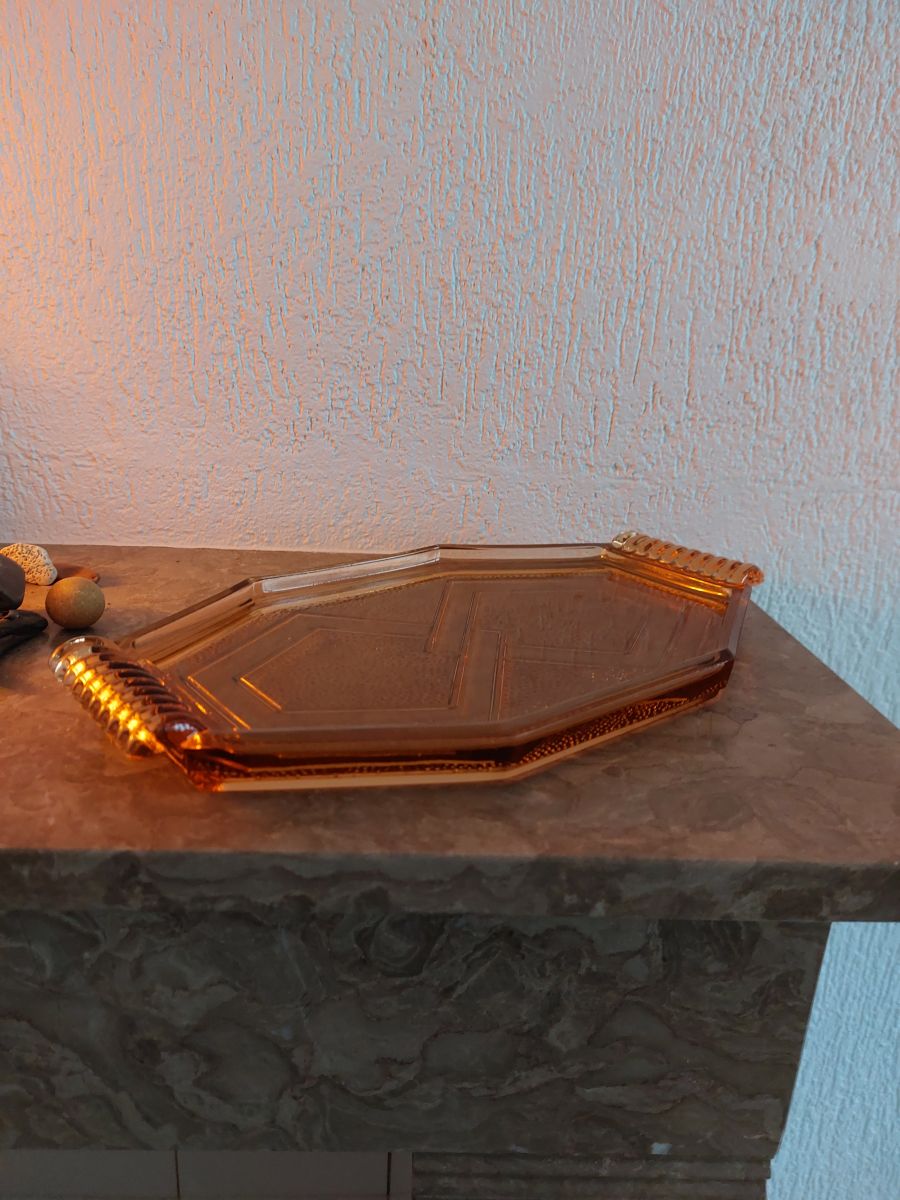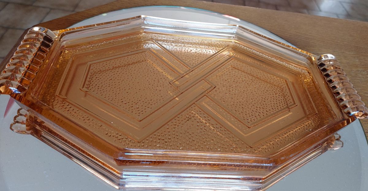 SUPERBE PLATEAU ART DECO VERRE MOULE