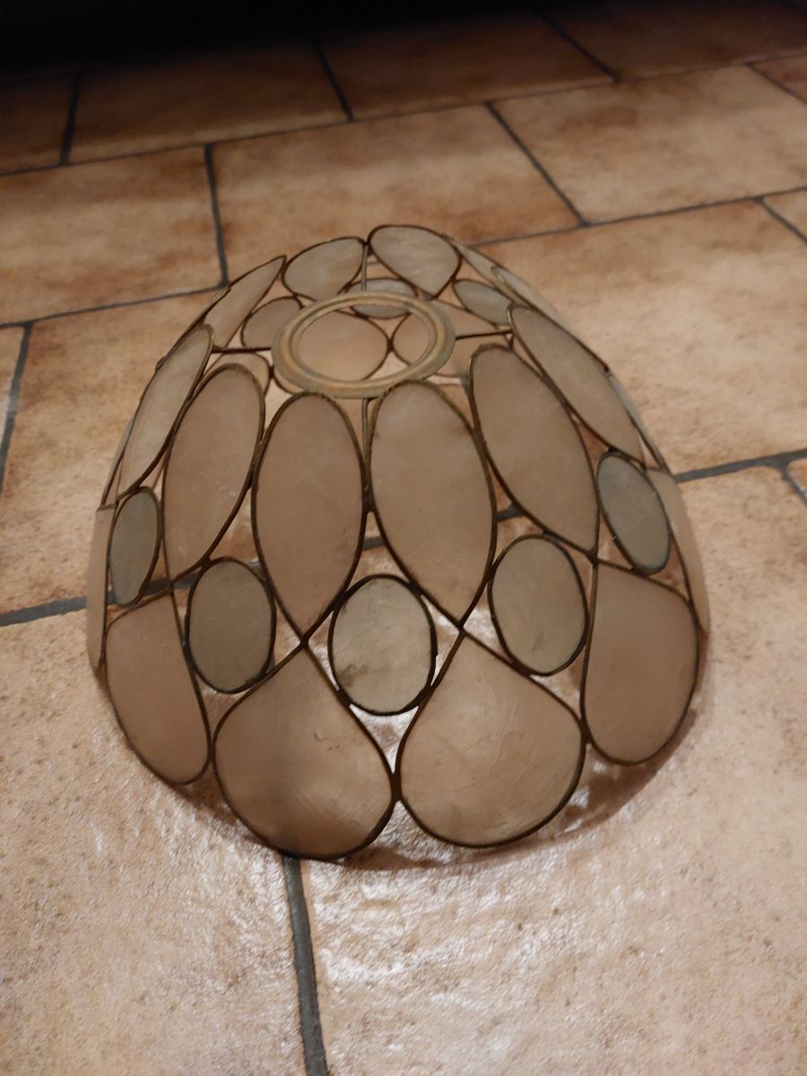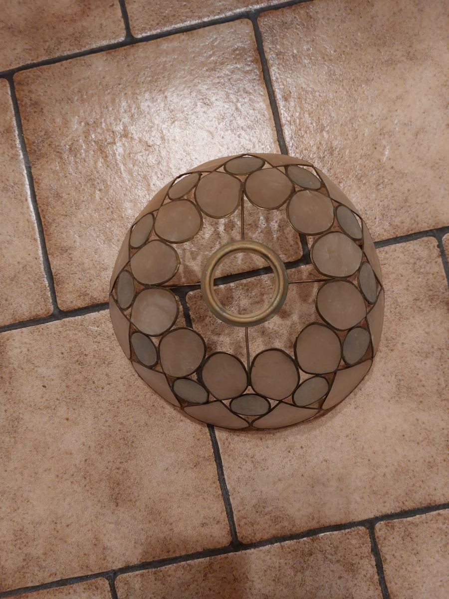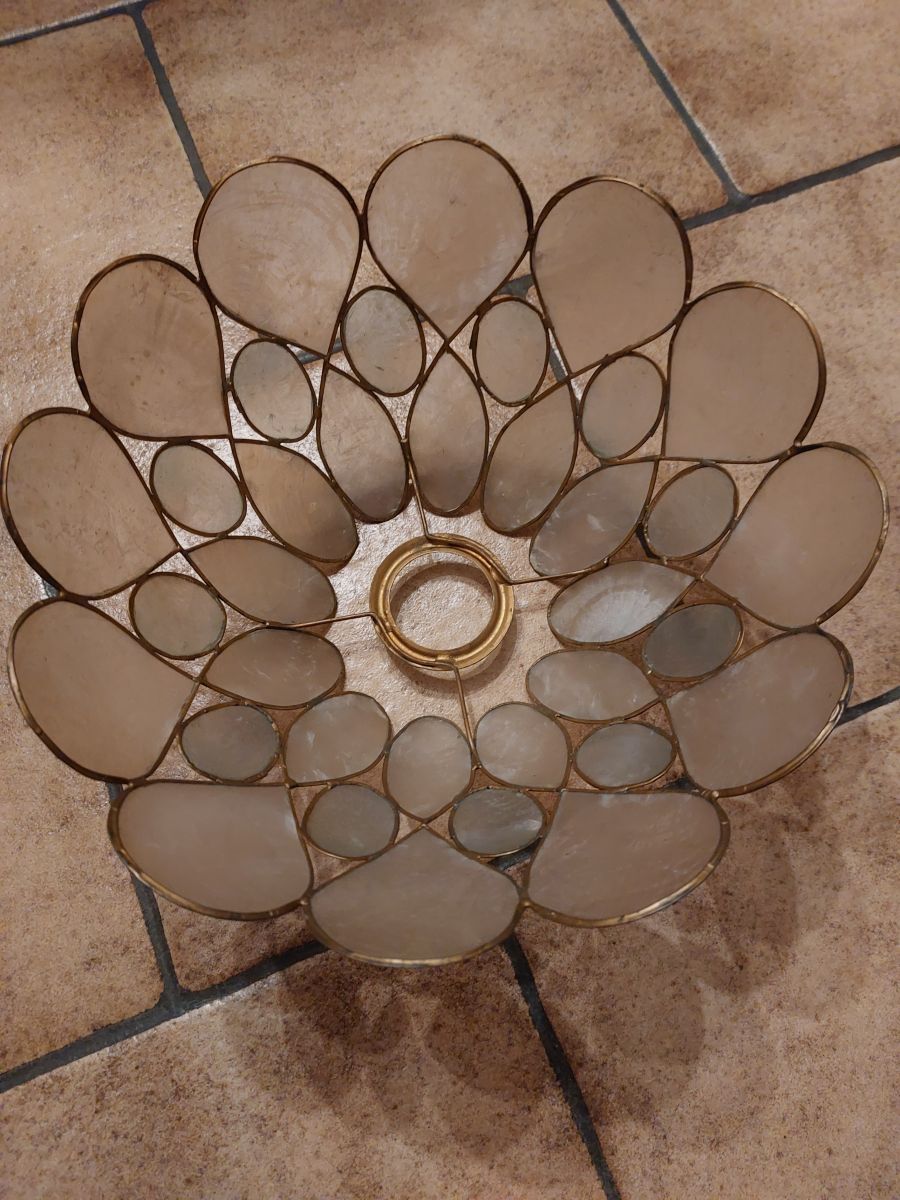 très beau plafonnier en nacre naturelle et je suppose laiton ou cuivre.
