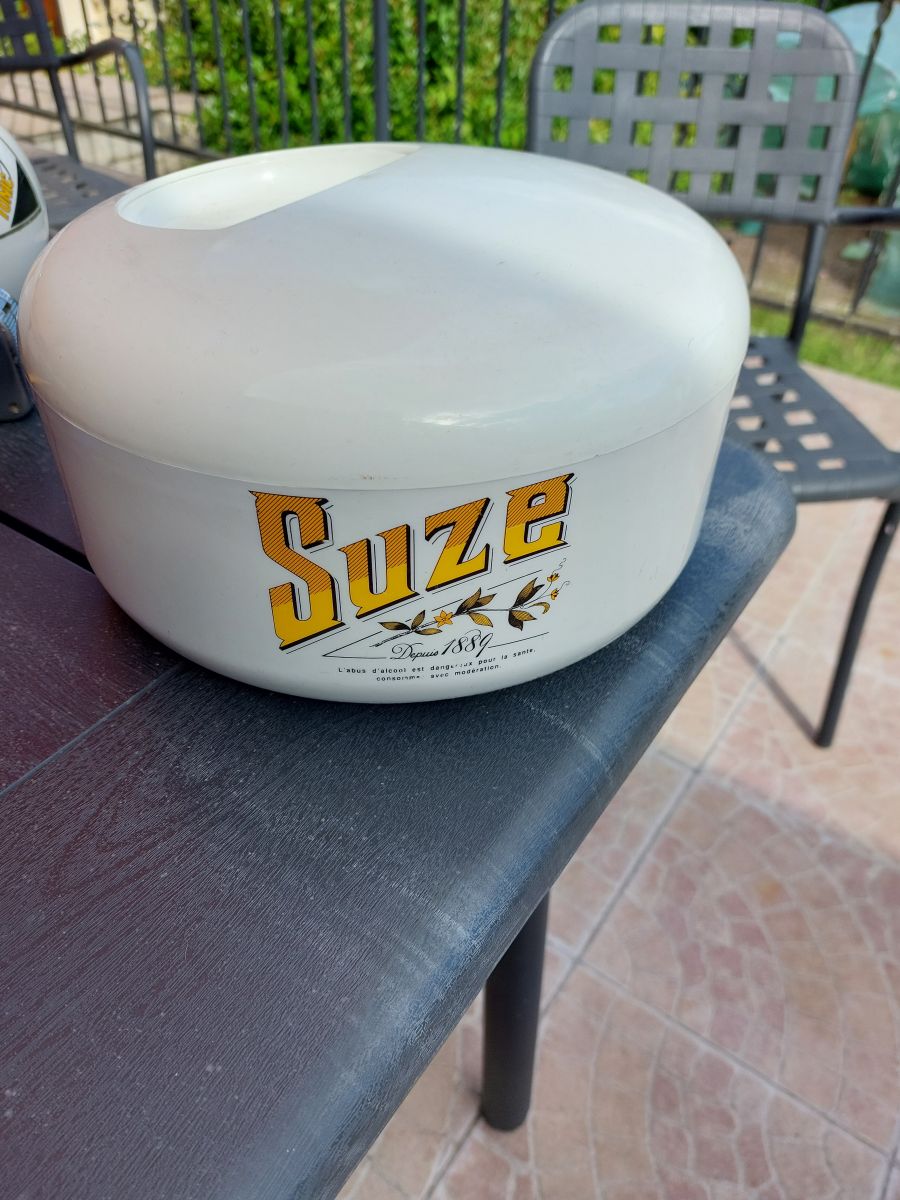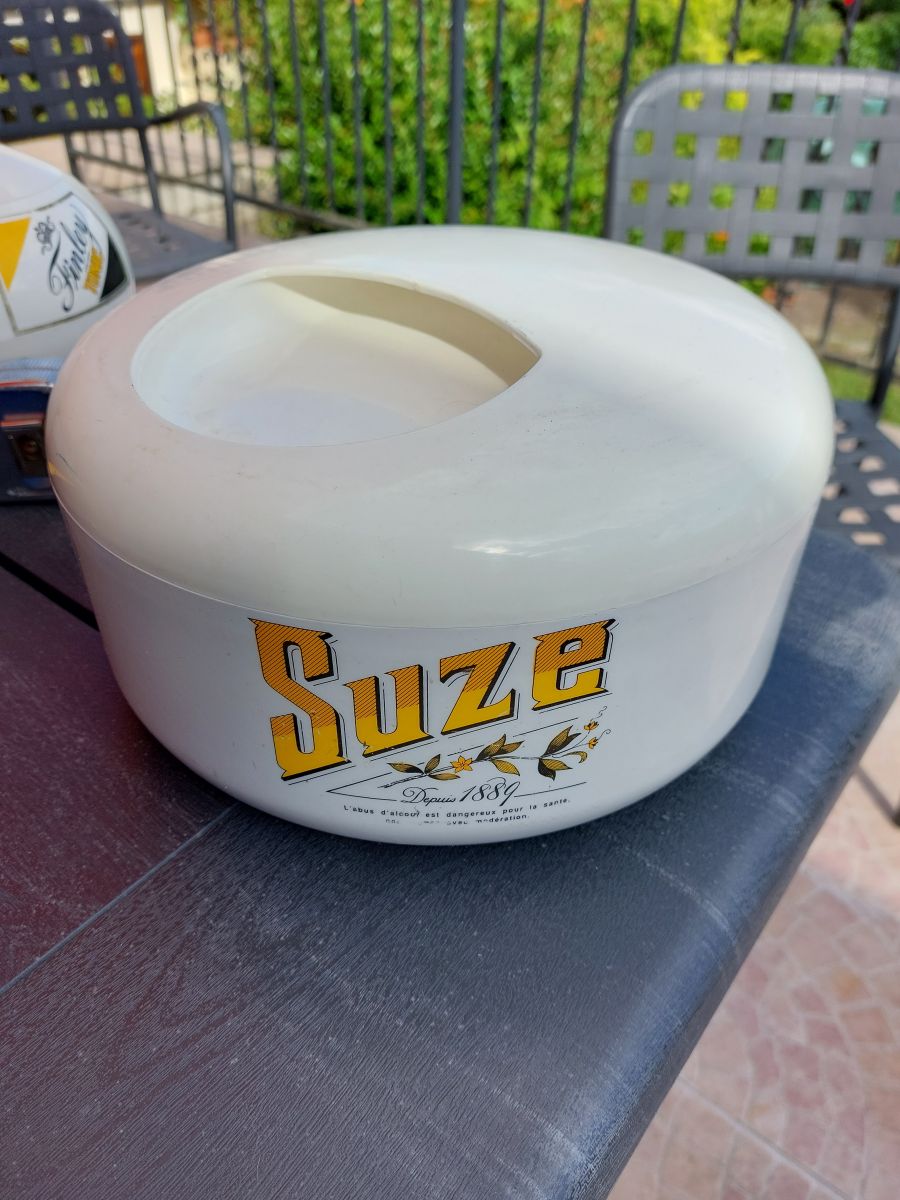 un logo Suze très légèrement usé sur les quatre. cet objet a son histoire il est normal qu'il ne soit pas neuf et espère continuer a vivre chez vous