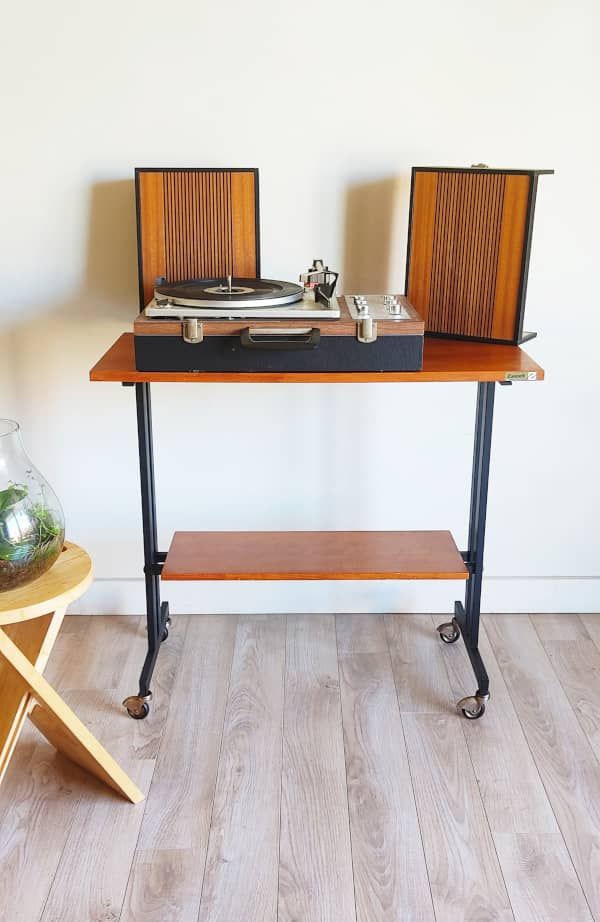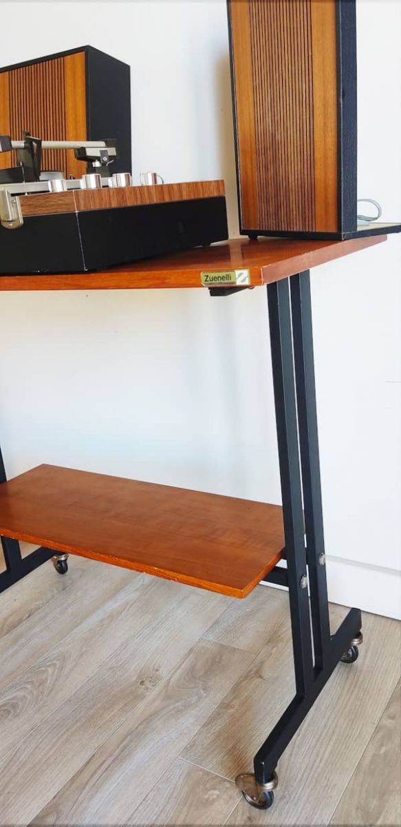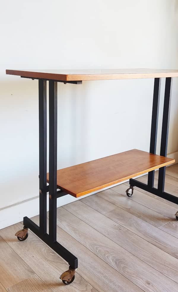 et ses plateaux en Teck. Légères traces sur le plateau la structure a été repeinte de la teinte d'origine.