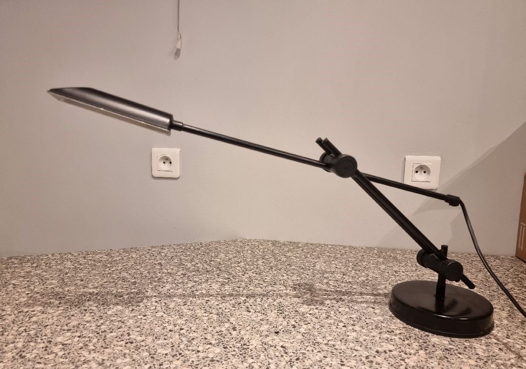 Lampe bureau vintage à bascule de la marque italienne Veneta Lumi. Tres bonne état, completament reglable, compatible avec ampoule led G4. La prise est malheureusement cassé (voir photo) et il faut la changer