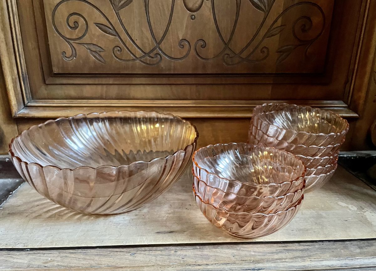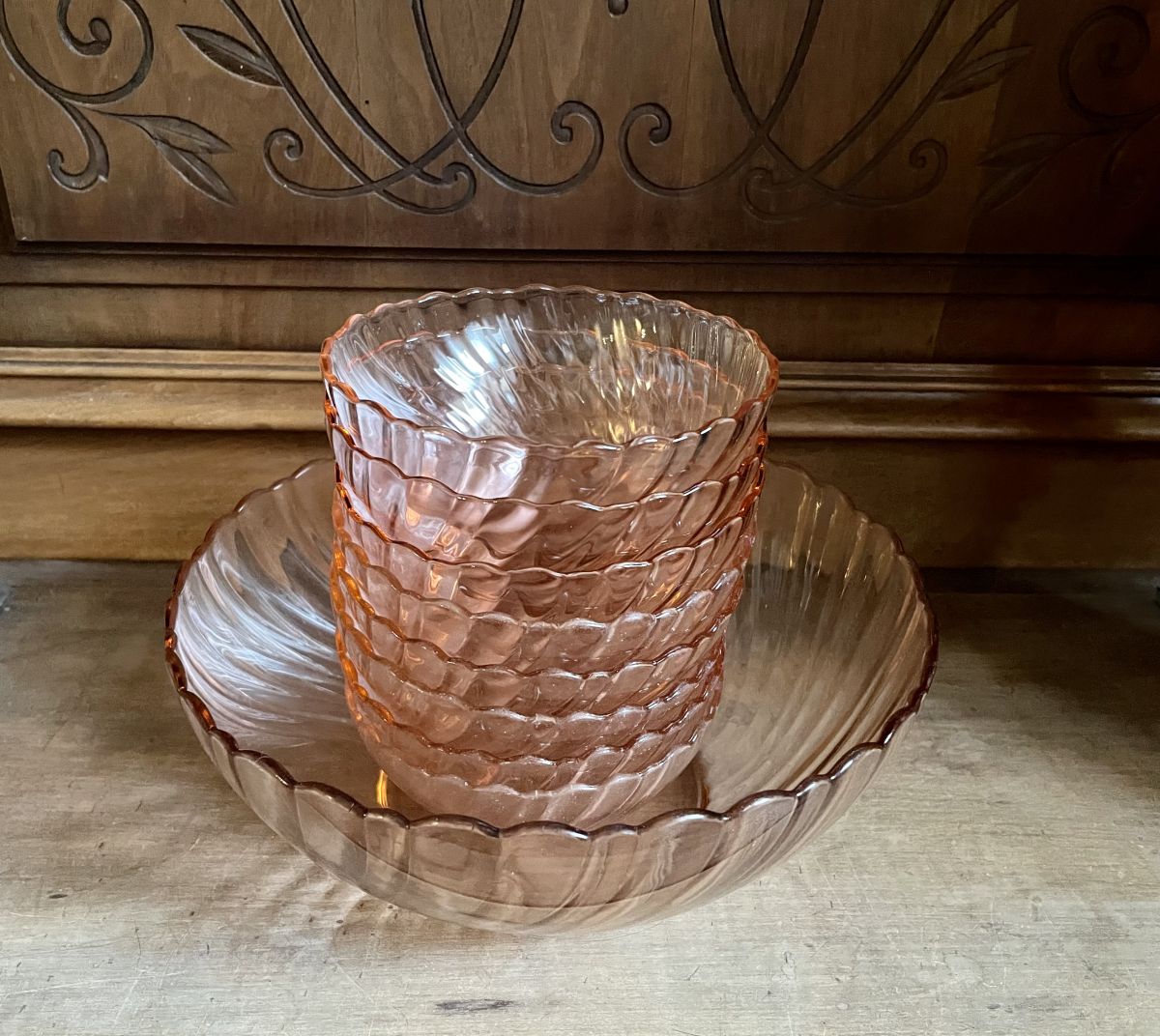 8 bols et un saladier rosaline arcoroc pour une salade de fruits aux saveurs girly ou une soupe de champagne rosé. Iconique série de la marque luminarc/arcoroc, rosaline est une pièce incontournable de la décoration vintage. Saladier diamètre 23, 5cm, hauteur 9, 5cm. Bols diamètre 12, 5cm, hauteur 5cm.