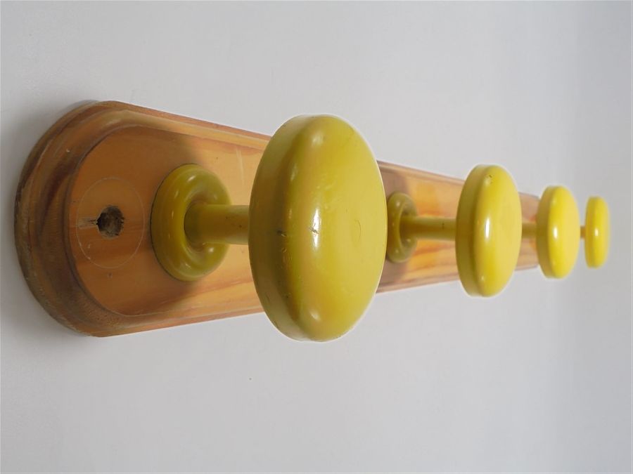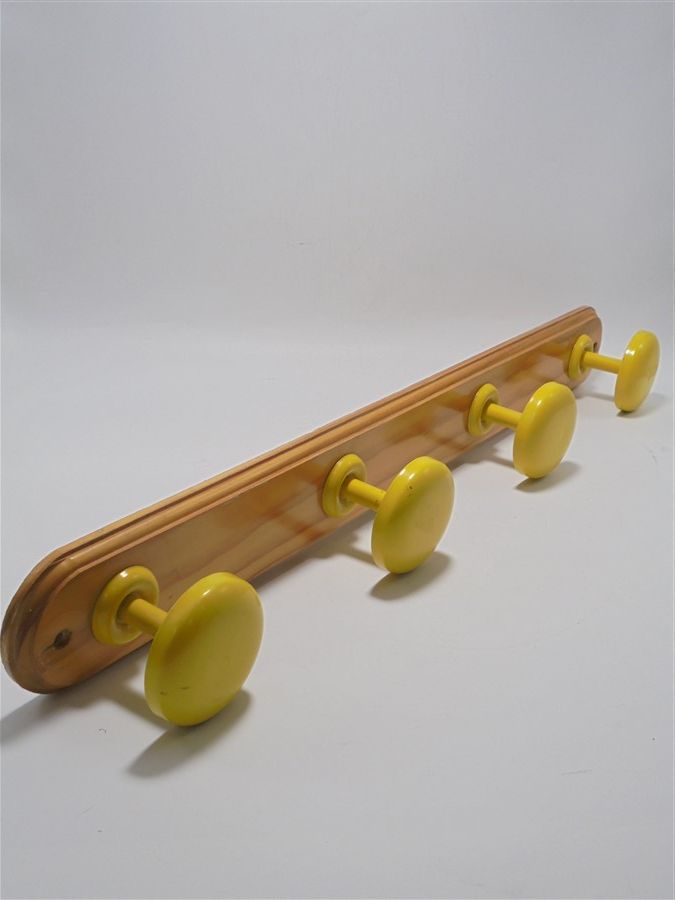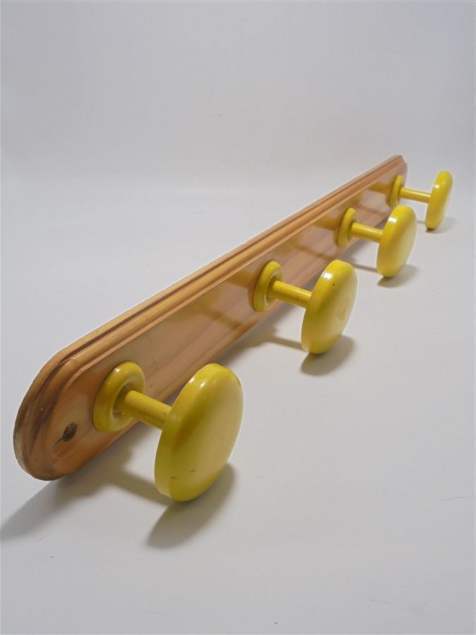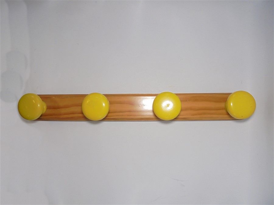Portemanteau muni de 4 patères en métal jaune, présentant de discrètes traces d'usage,