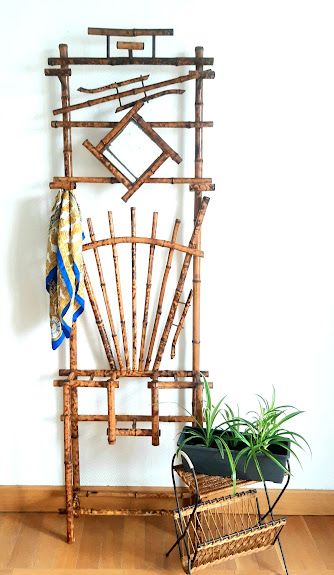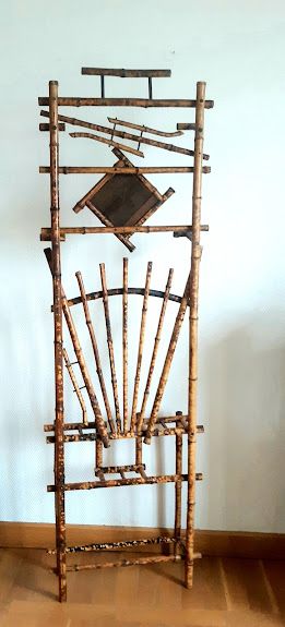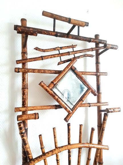 Grand vestiaire (ou meuble d'entrée) en bambou, d'époque art nouveau. Travail de style colonial , vers 1920.