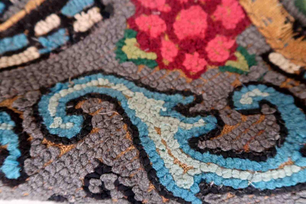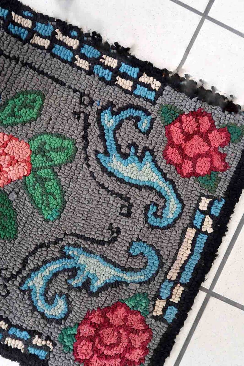 Tapis ancien Américain Hooked fait main, 1C985