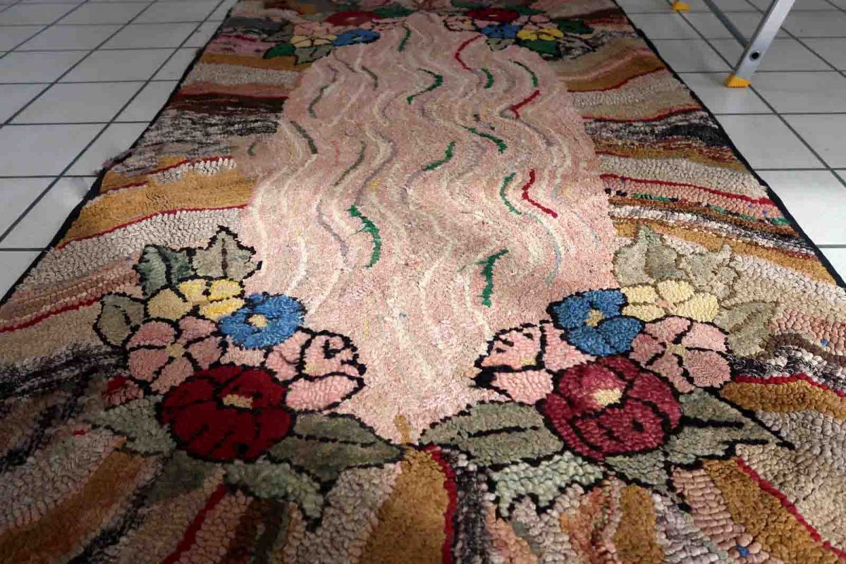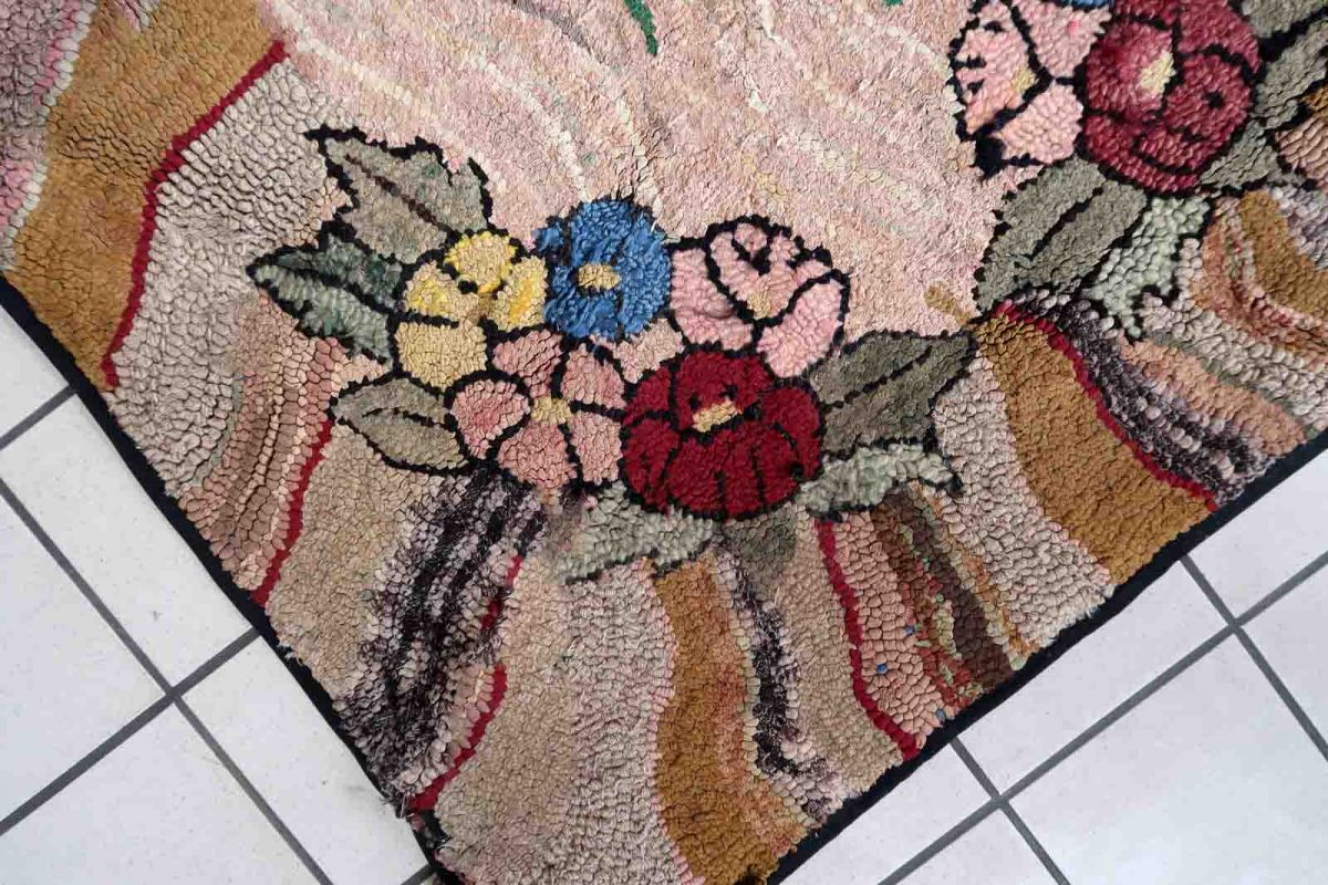 Handmade antique American Hooked rug in abstract design. The rug is from the end of 19th century. It is in good condition, has some old restorations.