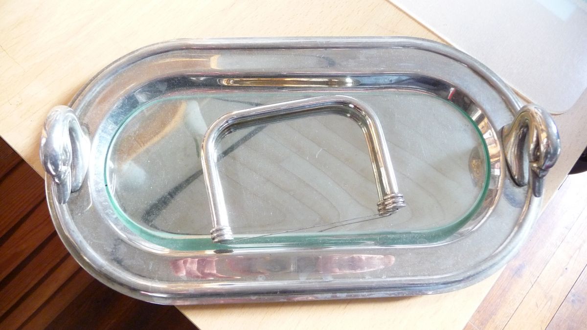 Poignées en forme de tête de canard, fond amovible en verre pour un nettoyage facile (parfait état), fil à couper le foie gras.