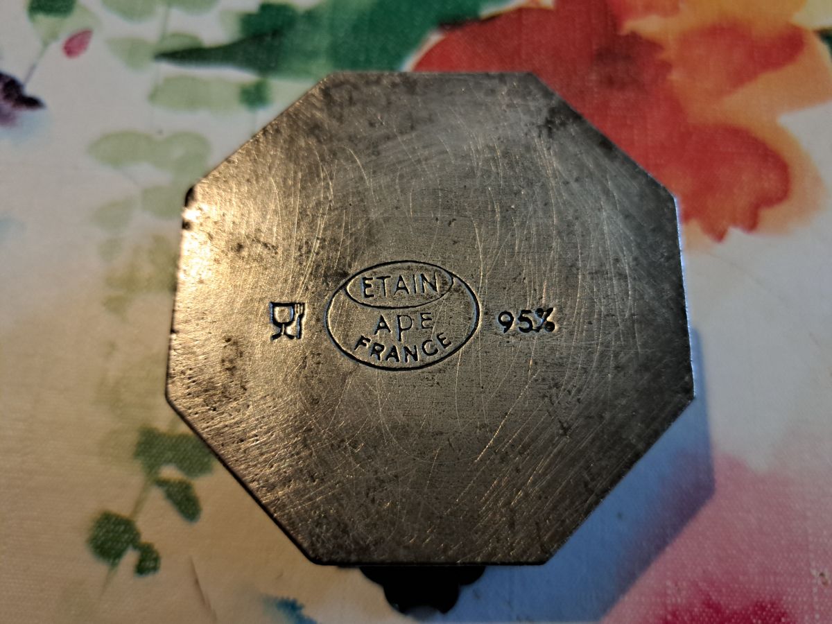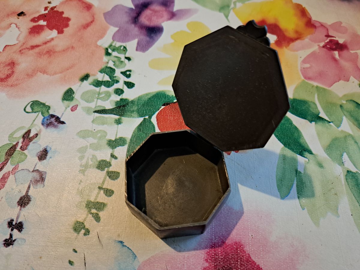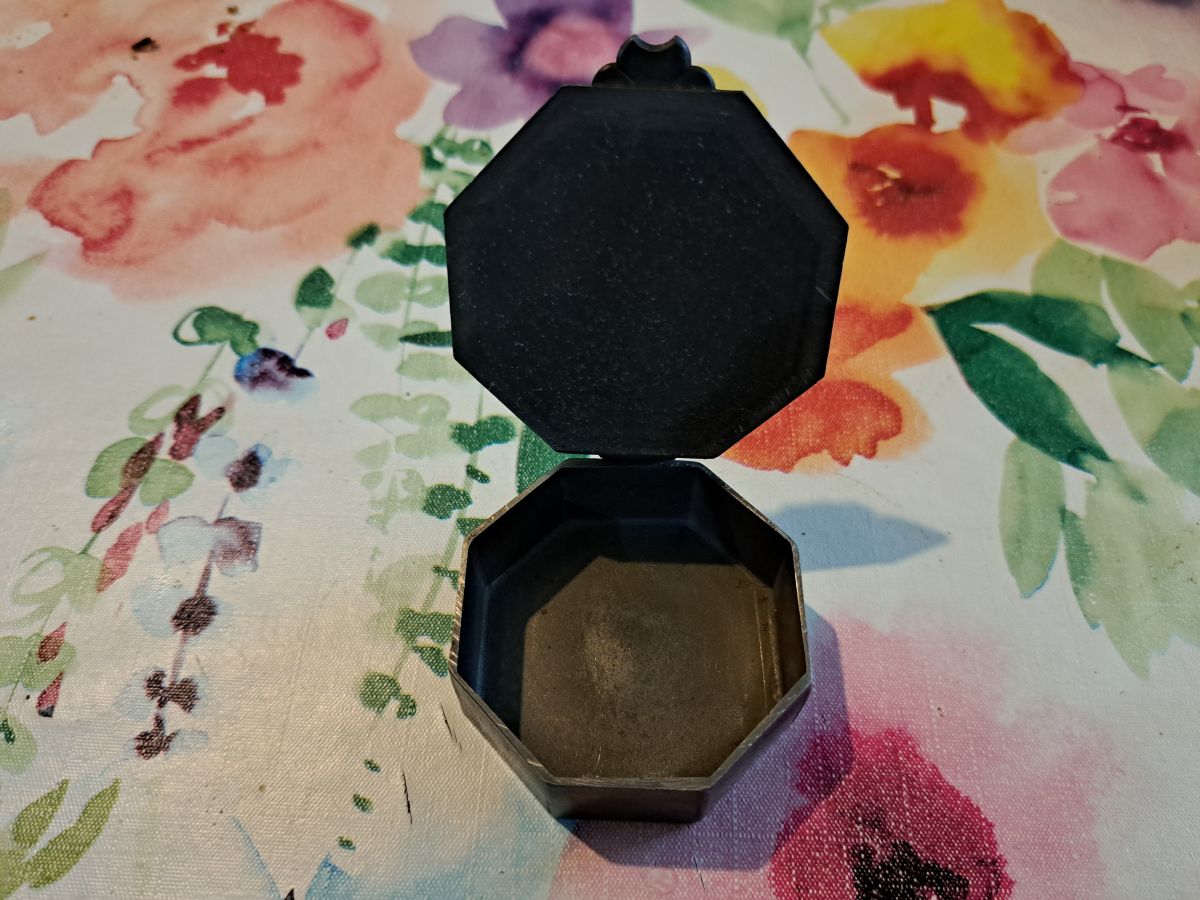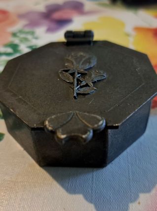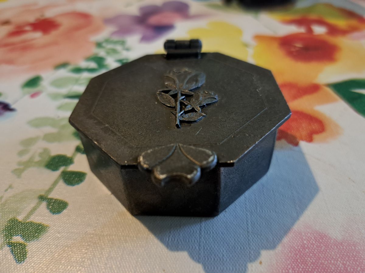 Petit boitier en étai à 95 % avec roses en relief objet ancien de collection en bon état