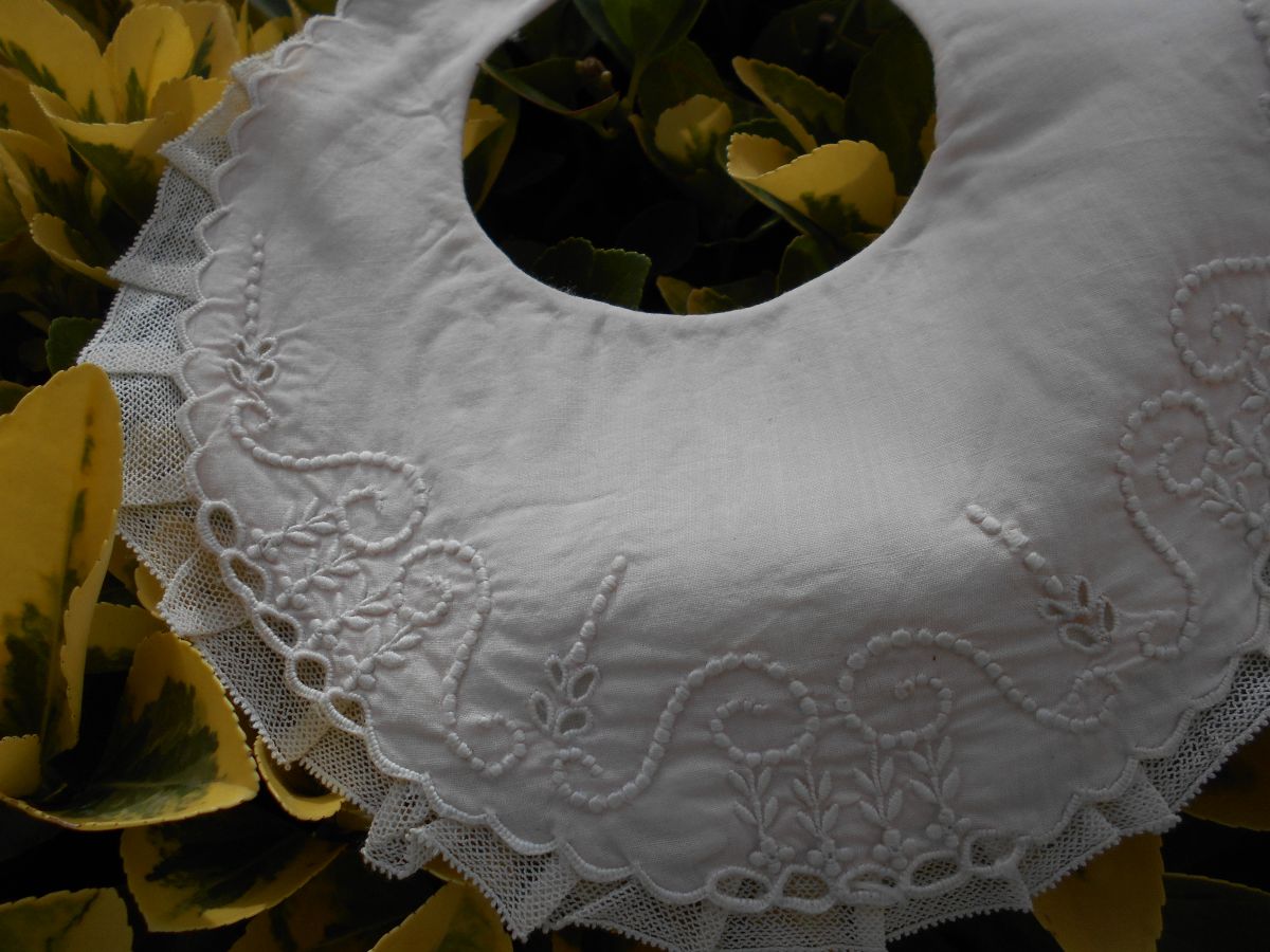 UNE EPAISSEUR DE TISSUS AVEC DE MAGNIFIQUES BRODERIES DE PLANTES FESTONNE SUR TOUT LE TOUR DU BAVOIR