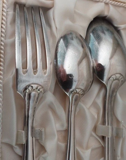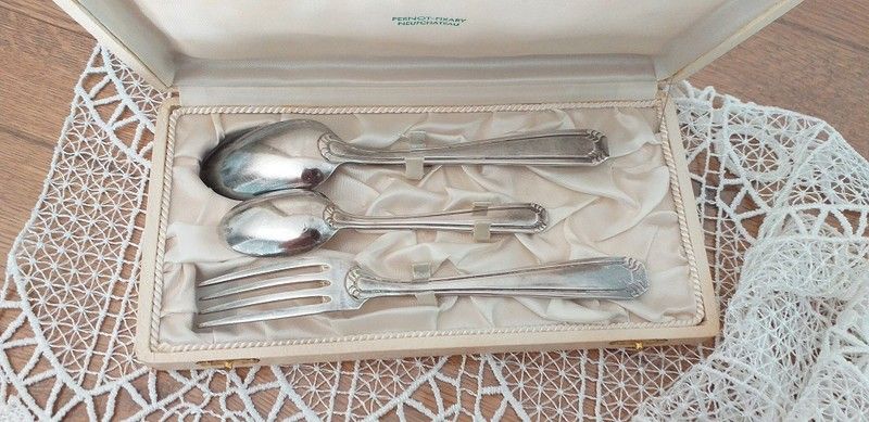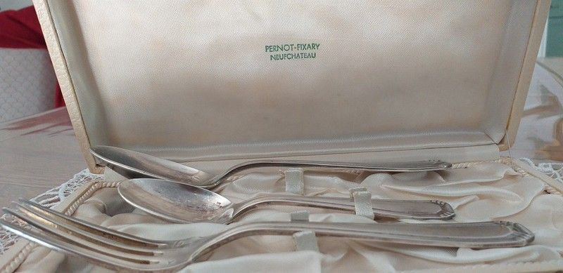De la bijouterie Pernot Fixary, set de couverts, 65 ans d'âge, jamais servi.